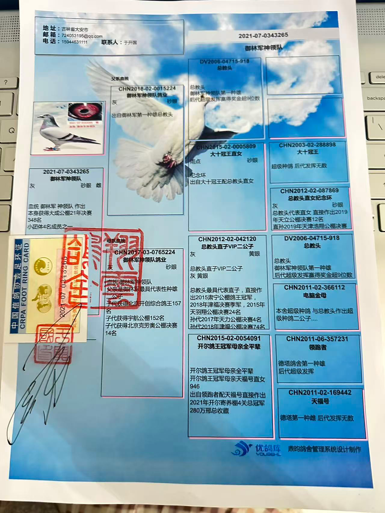 - 当前查看拍卖鸽:御林军总教头----大成公棚348名