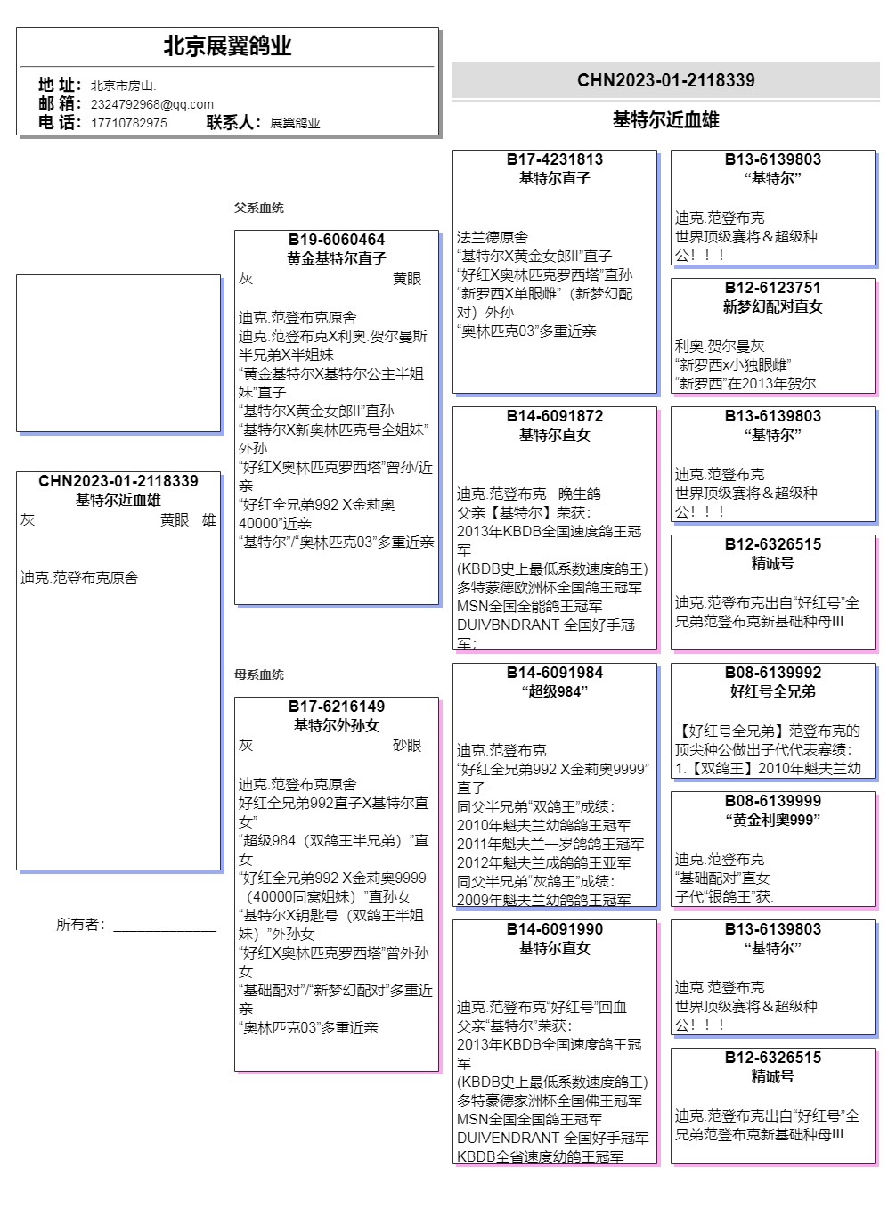 - 当前查看拍卖鸽:基特尔近血雄8339