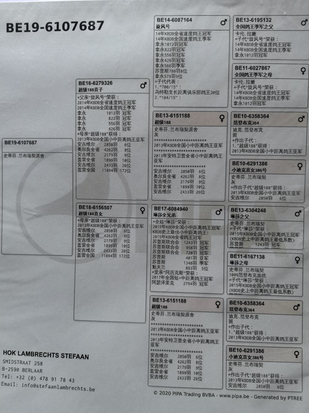 兰布瑞契原舍,全国速度鸽王亚军“超级188”直子×直女