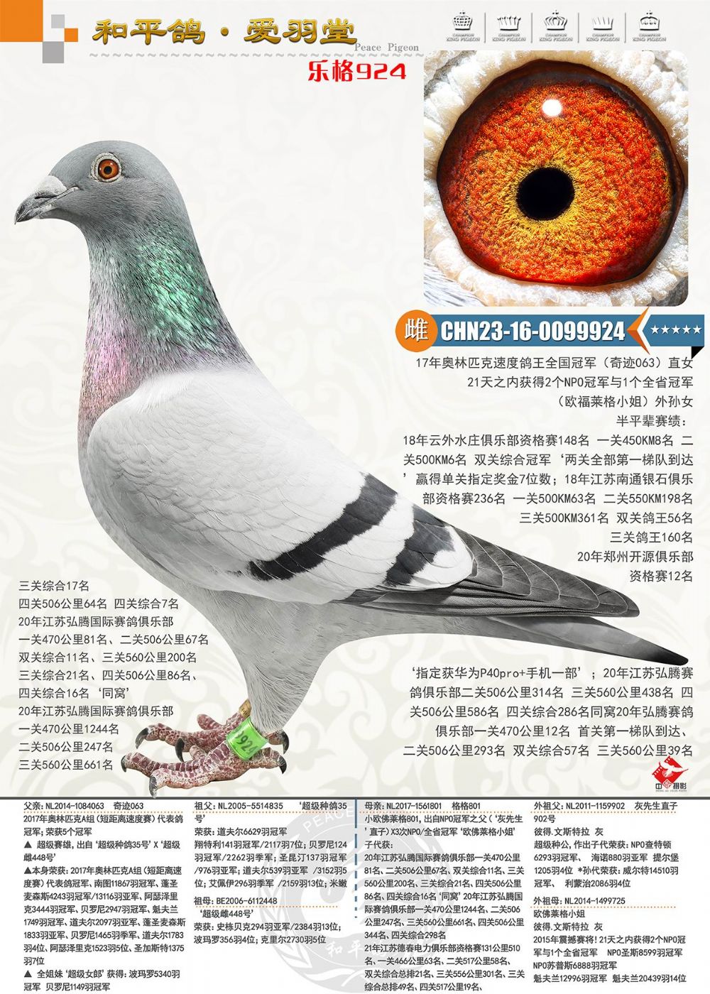 17年奥林匹克速度鸽王全国冠军(奇迹063)直女