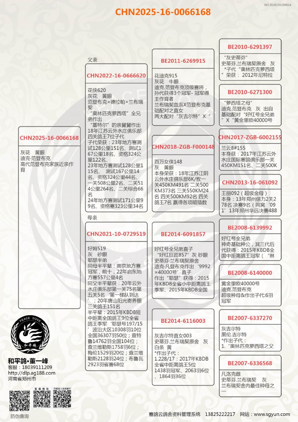 - 当前查看拍卖鸽:高代范登布克家族近亲作育、范登布克×吉尔