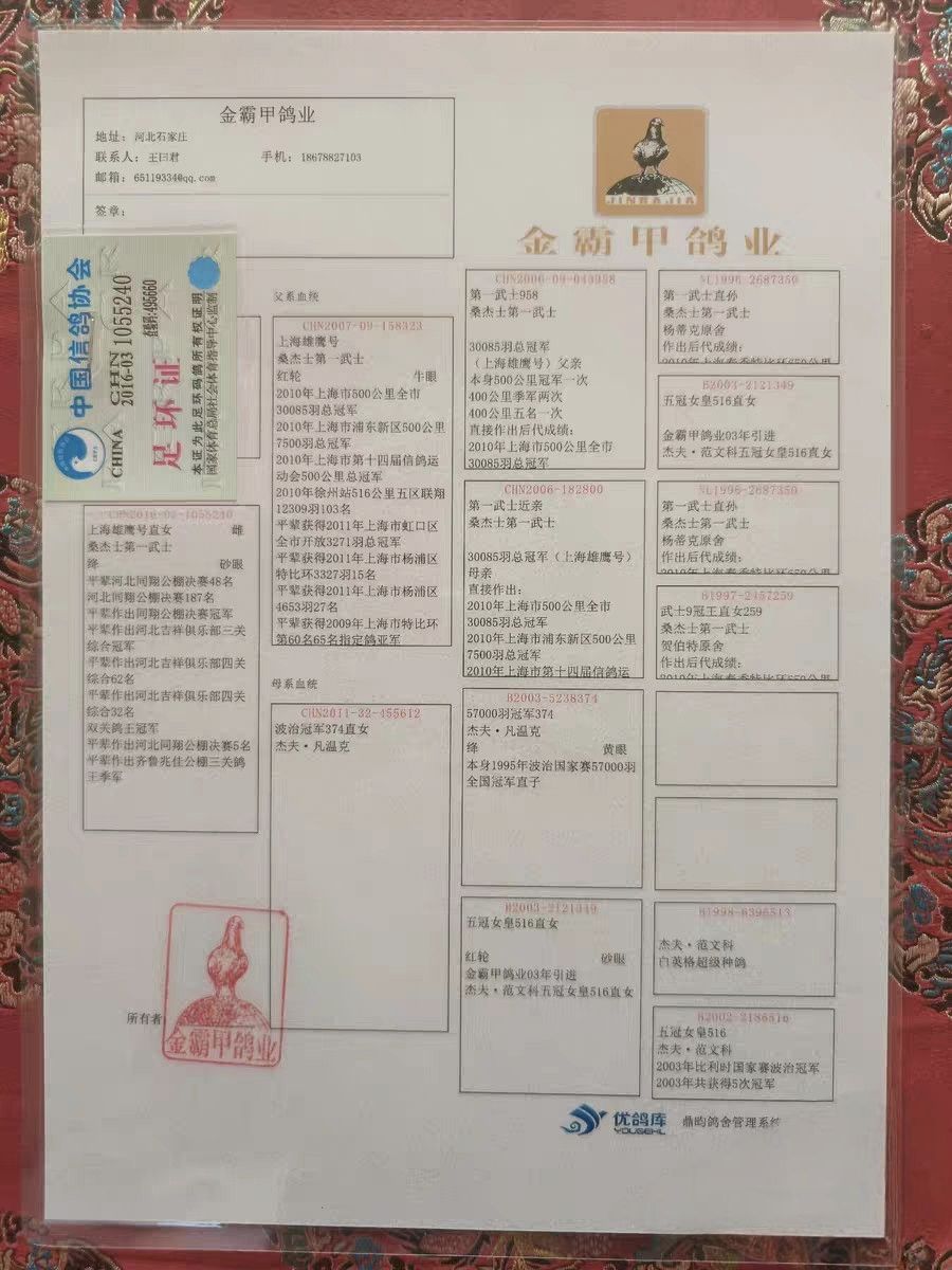 本舍种鸽可提供原始血统书足环证