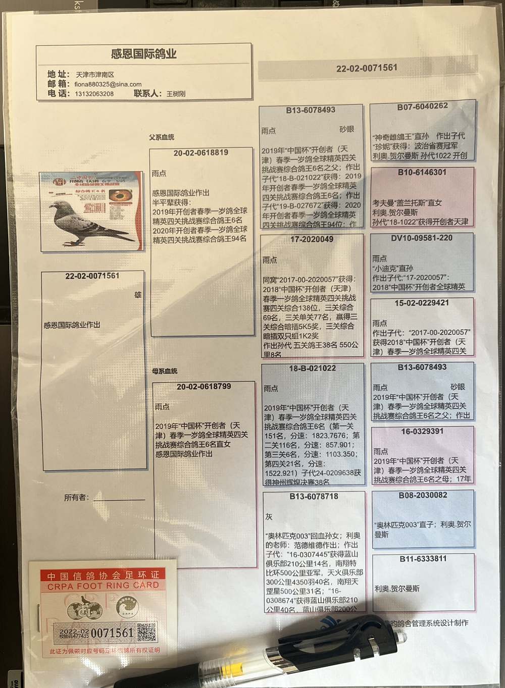鸽主:感恩国际鸽业-王树刚 私环种鸽"