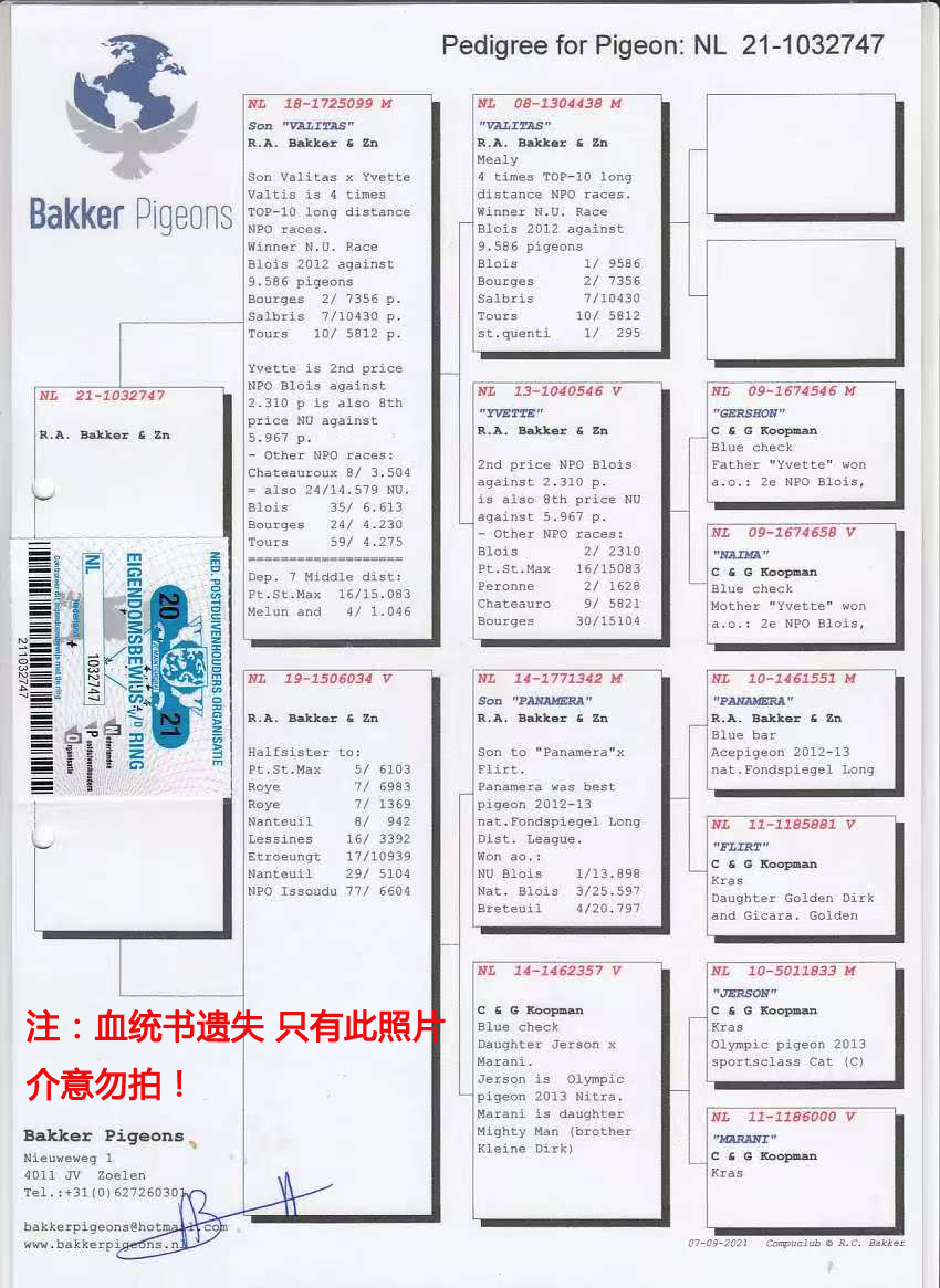 外祖父:NL14-1771342 “帕拉梅拉”直子,巴克父子