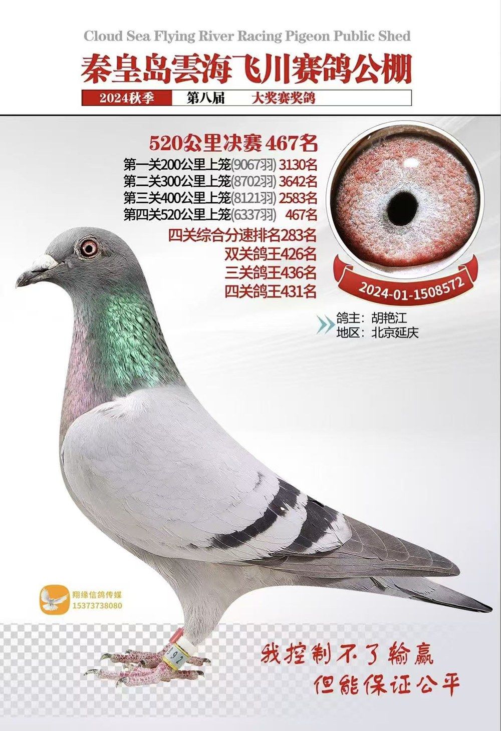 秦皇岛雲海飛川赛鸽公棚520公里决赛467名;