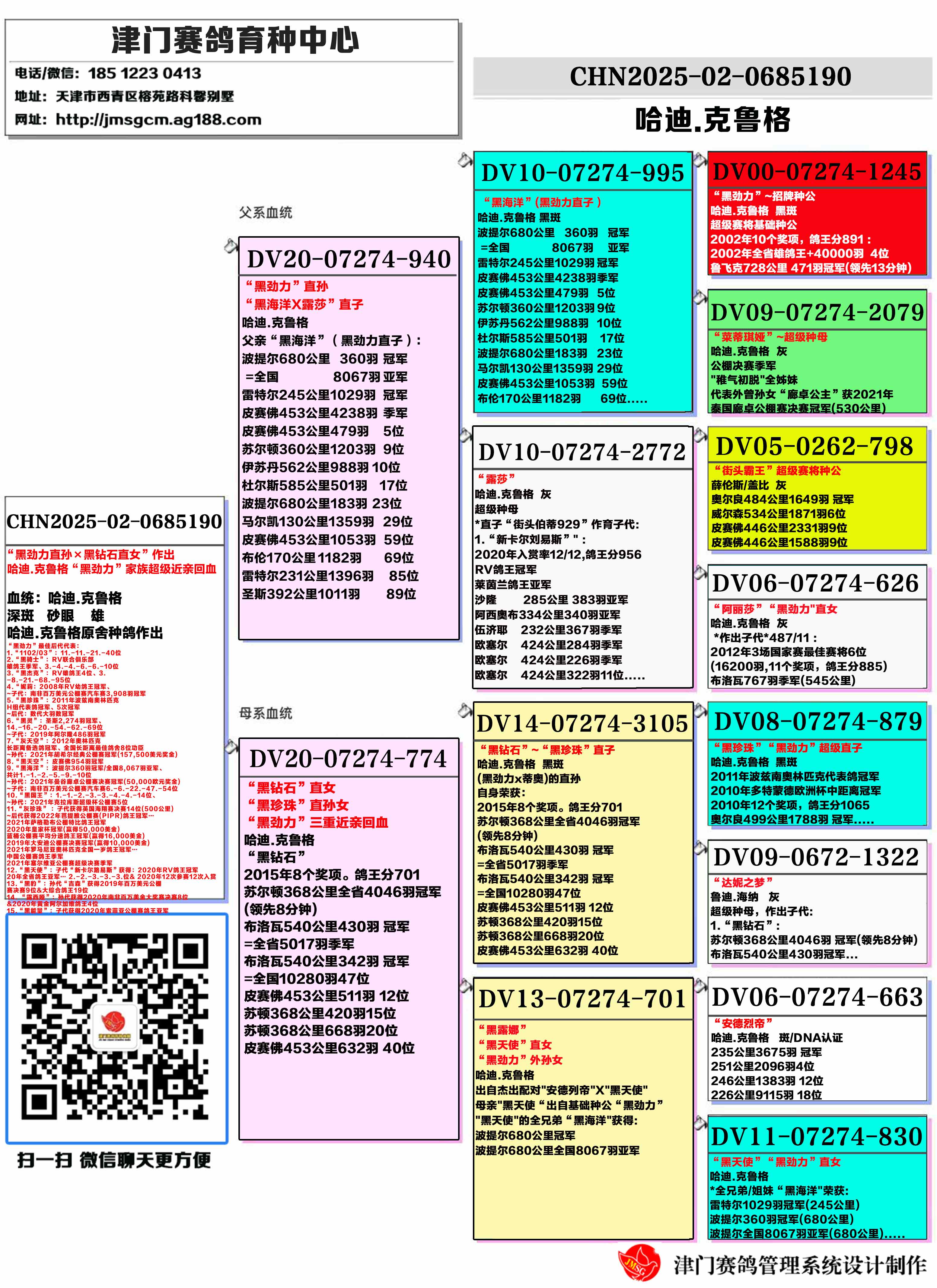 | 1647221 | 迪克.凡登布克“格里佩直子X基特尔外孙女”好红号多重近亲 | ¥300元 | 1次 |