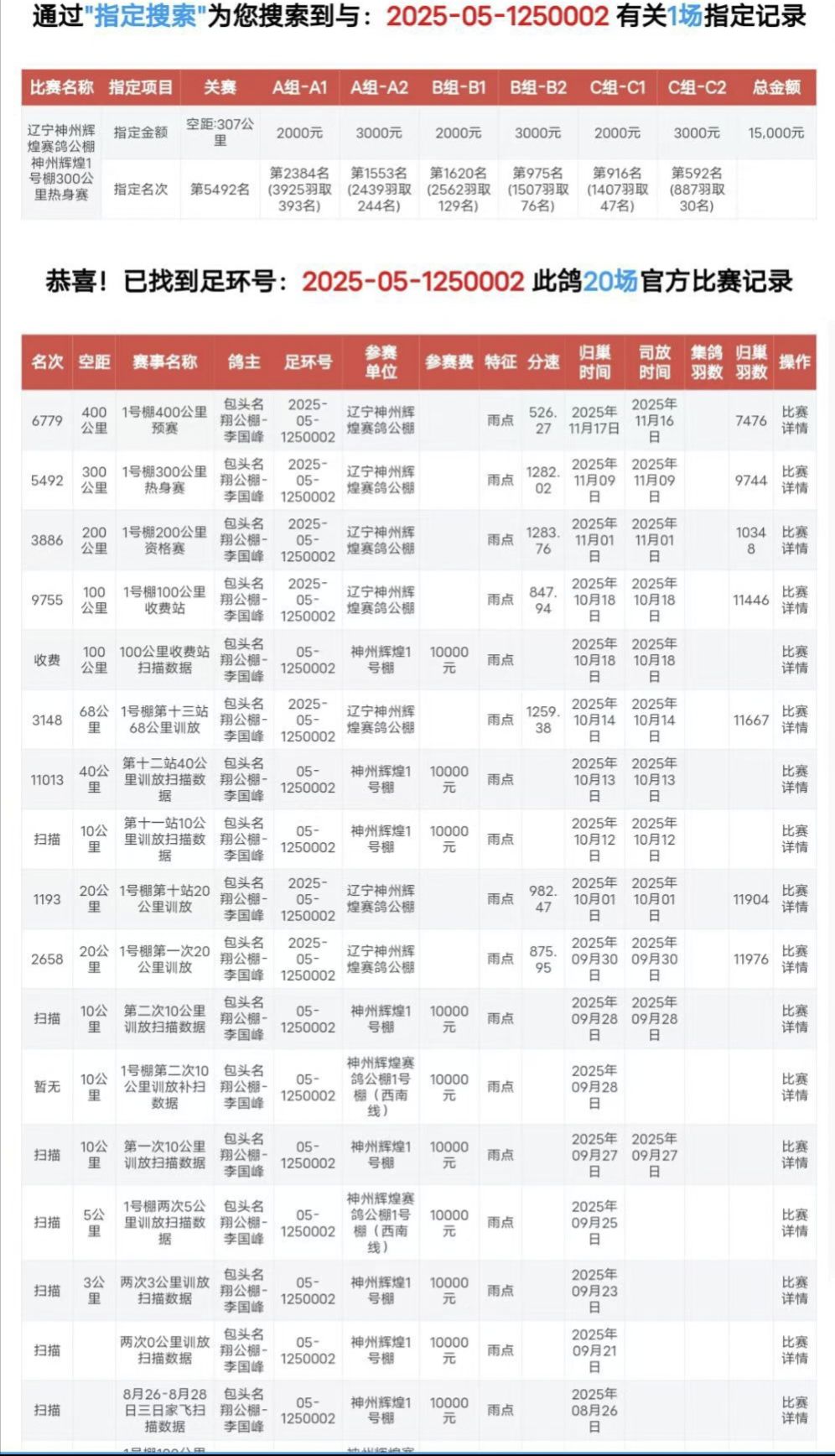 1647731 吉林名家天赐翔冠A参赛五百公里31名 ¥200元 0次