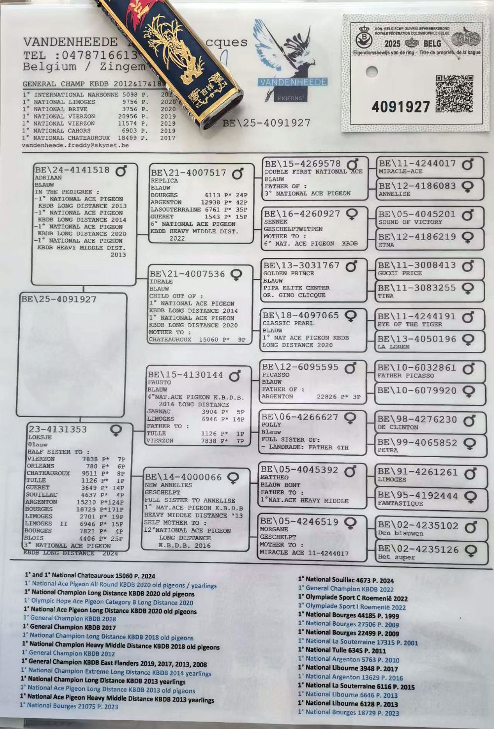 因拍卖鸽均是未做育过的种鸽或幼鸽,图内所标雌雄仅供参考,实际性别已实物为准。不做退换理由。
