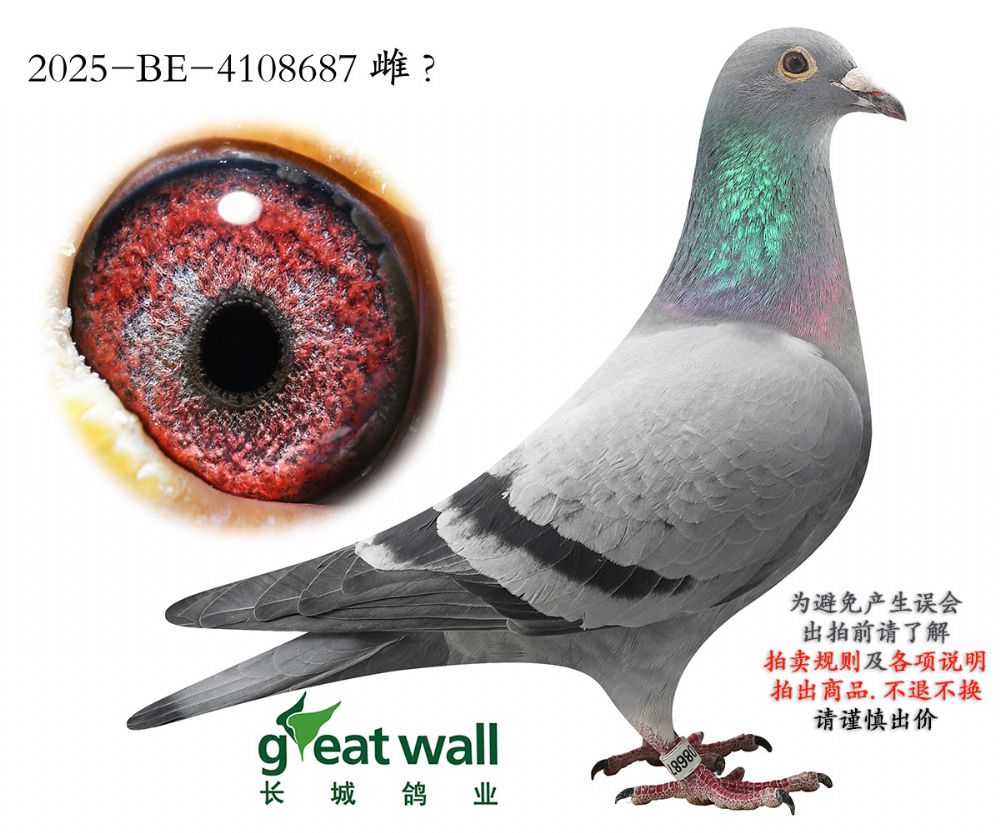 因拍卖鸽均是未做育过的种鸽或幼鸽,图内所标雌雄仅供参考,实际性别已实物为准。不做退换理由。