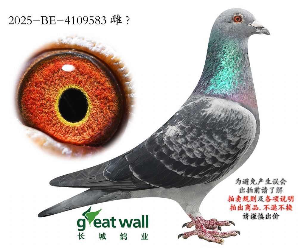 因拍卖鸽均是未做育过的种鸽或幼鸽,图内所标雌雄仅供参考,实际性别已实物为准。不做退换理由。