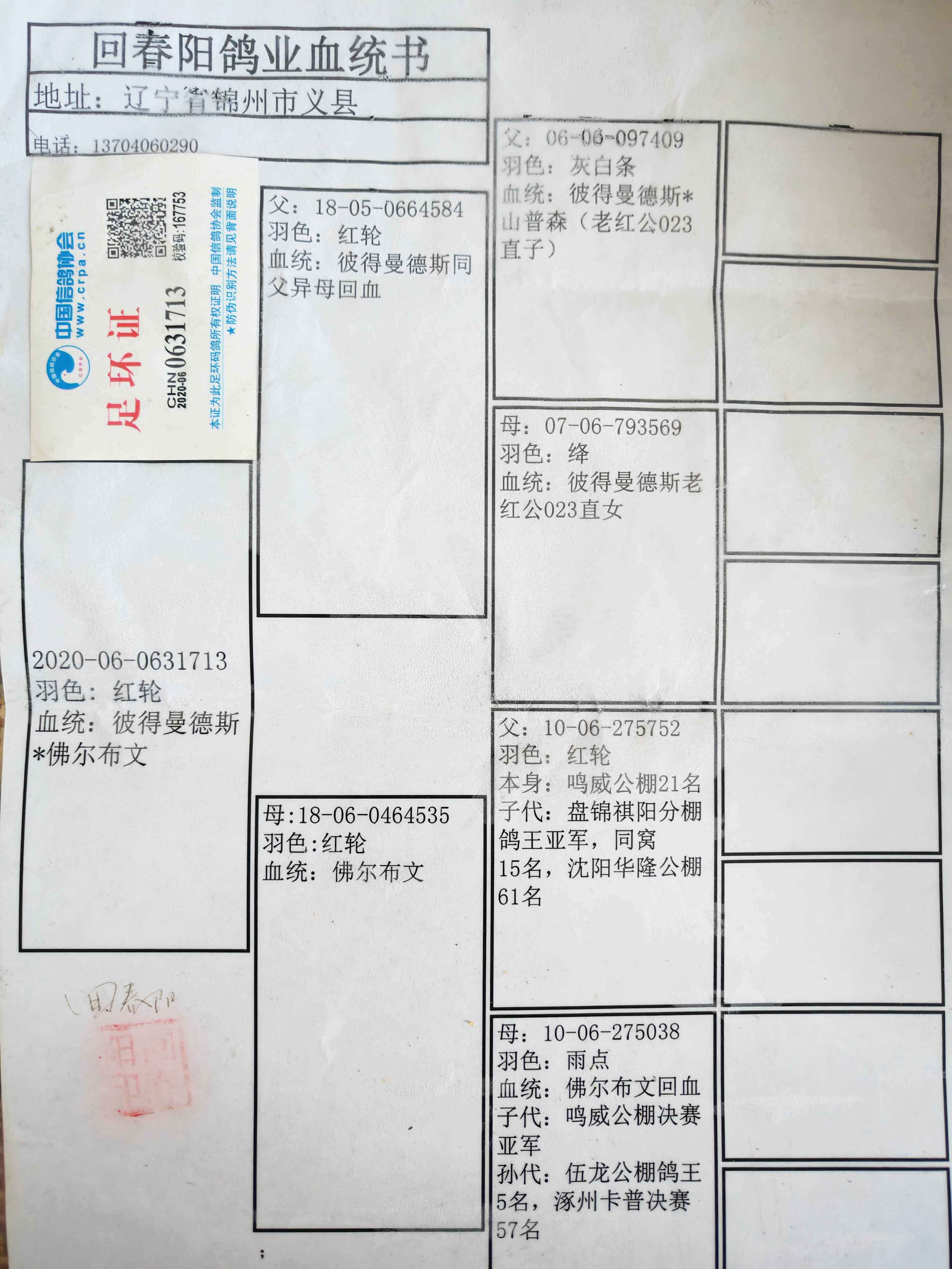 血统鸽未制作血统书,拍卖鸽下方都有父母照片”!!!