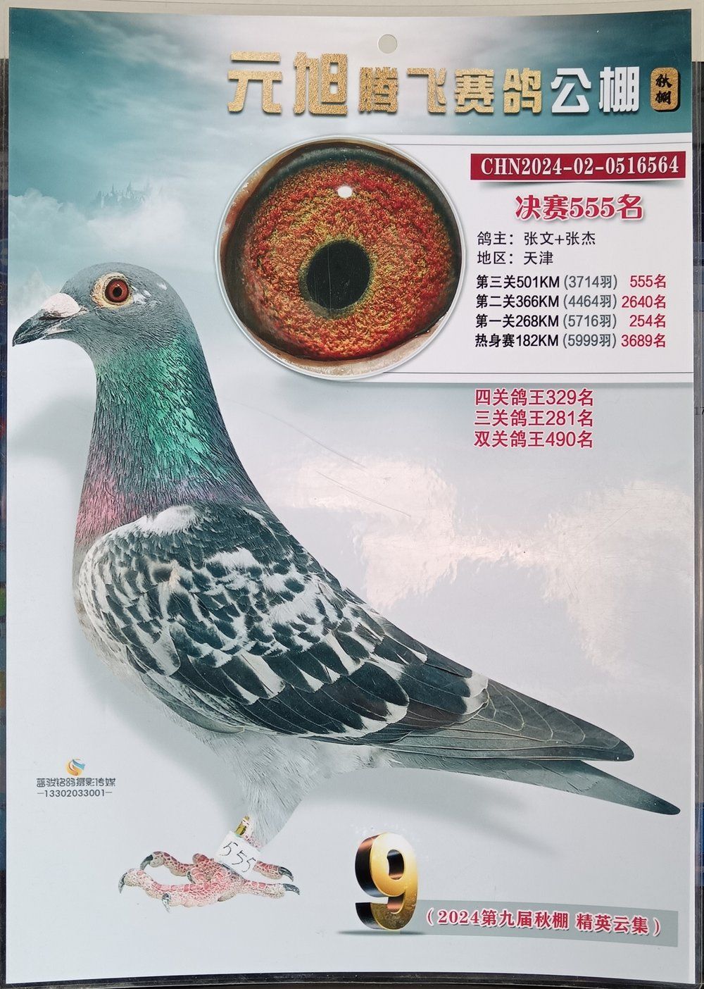 天津元旭腾飞赛鸽公棚501公里决赛555名;