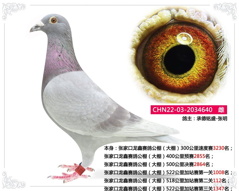 本身:张家口龙鑫赛鸽公棚(大棚)300公里速度赛3230名;