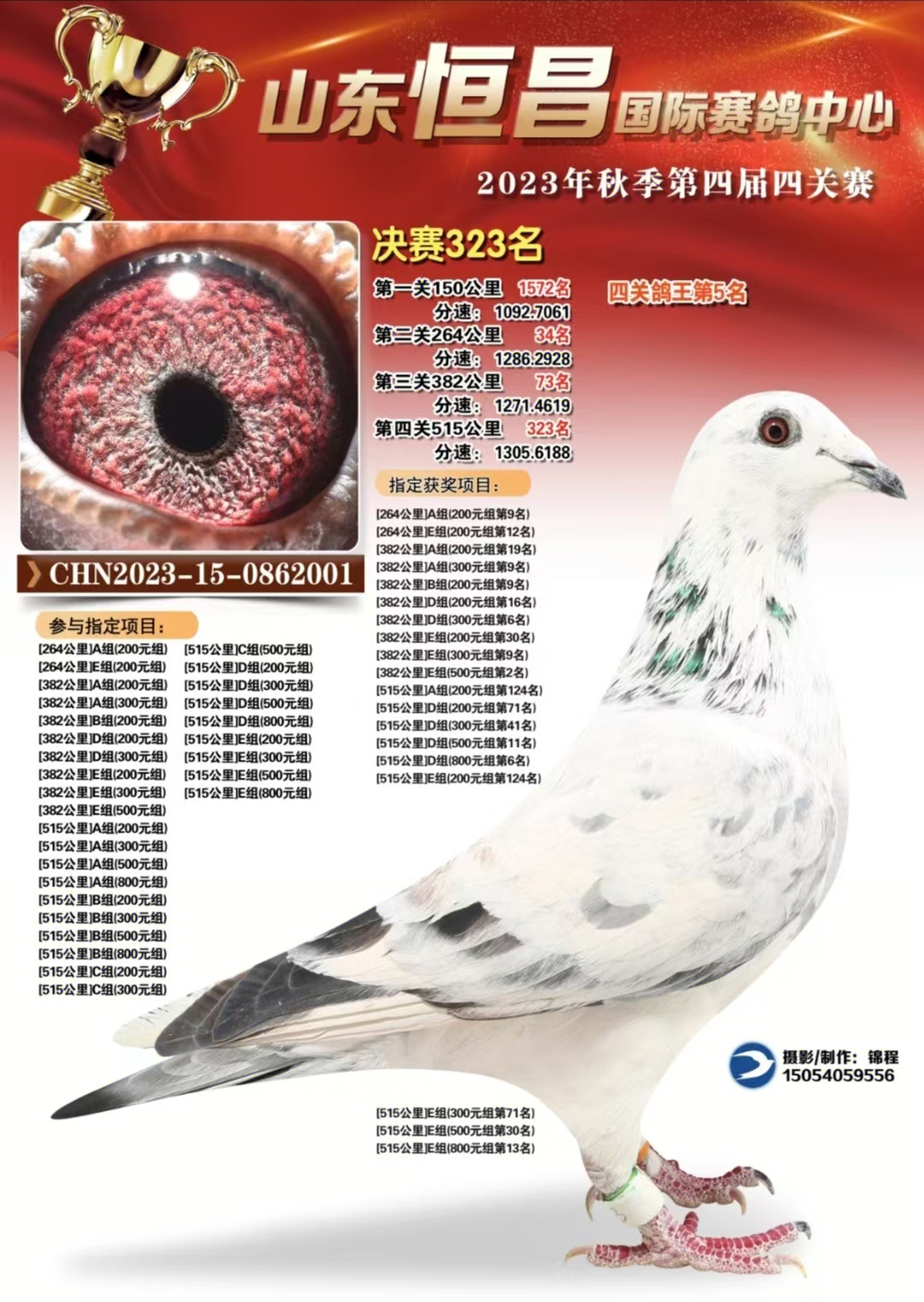 东方不败直子,平辈公棚四关鸽王65位,20位。