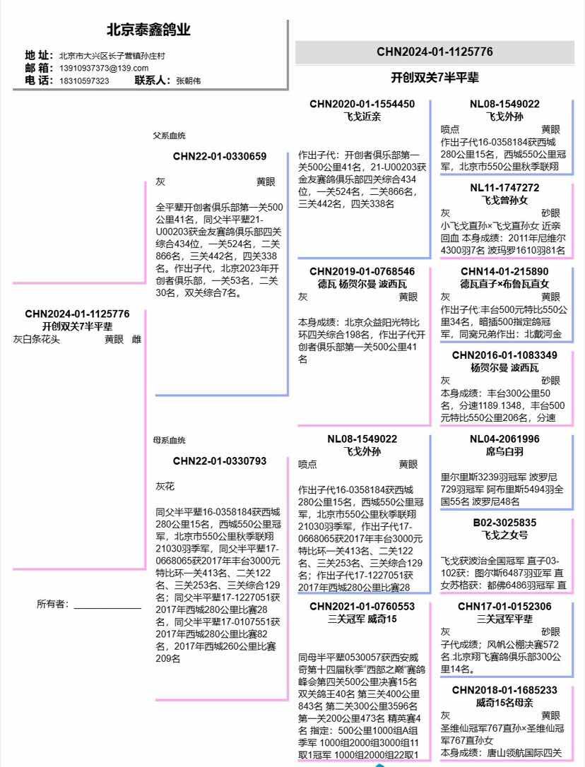 - 当前查看拍卖鸽:24.北京开创双关鸽王7名半平辈