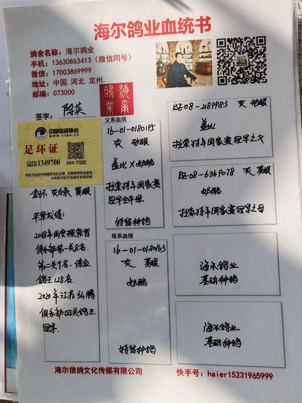 上传血统书随鸽发出 没有上传的就是没有 介意勿拍