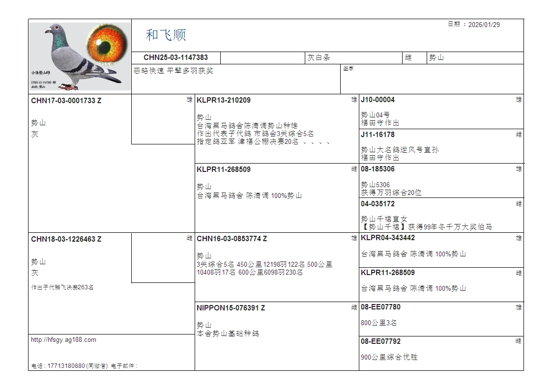 - 当前查看拍卖鸽:势山(12个月龄)恶略快速