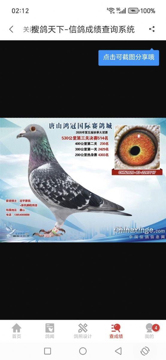 2020年唐山-连宇赛鸽+新民鹏程鸽舍,送唐山鸿冠赛鸽公棚,参赛费1800元,100公里收费站508名(9639羽),400公里半决赛230名(5325羽),530公里决赛514名(4166羽),雄,质量高级,血统,迪克.凡戴克