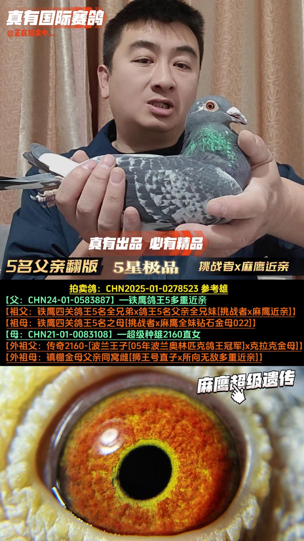 由于所有拍卖鸽均没有作育记录,因此无法100%保证雌雄的正确性,拍卖视频中的雌雄仅供参考,最终以实物为主。如有雌雄特殊要求请及时联系真有国际确认,所有拍卖鸽均享受7天免费换鸽服务(运费自理),由于拍卖形式的鸽子具备商品的唯一性,因此不支持退款服务,感谢大家的理解与支持!谢谢!