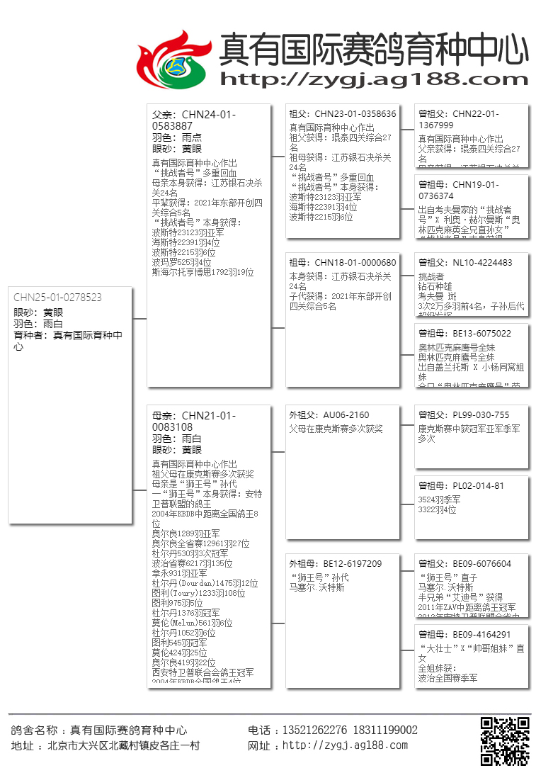 【在这三座金矿还未被世人发现之前,真有国际就第一时间把高品质的鸽子带到了国内,取得了空前的发挥。近几年大家才逐渐认识这几位大师鸽子的魅力。请记住!当任何商业鸽舍进入炒作后期的时候,他的鸽子质量与价值都会急剧下降,即便是詹森兄弟也难免于此。所以引进这家鸽舍最巅峰时期的鸽子,得以延续,才是真有国际成功的致胜法宝。】