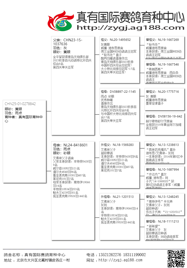 【在这三座金矿还未被世人发现之前,真有国际就第一时间把高品质的鸽子带到了国内,取得了空前的发挥。近几年大家才逐渐认识这几位大师鸽子的魅力。请记住!当任何商业鸽舍进入炒作后期的时候,他的鸽子质量与价值都会急剧下降,即便是詹森兄弟也难免于此。所以引进这家鸽舍最巅峰时期的鸽子,得以延续,才是真有国际成功的致胜法宝。】