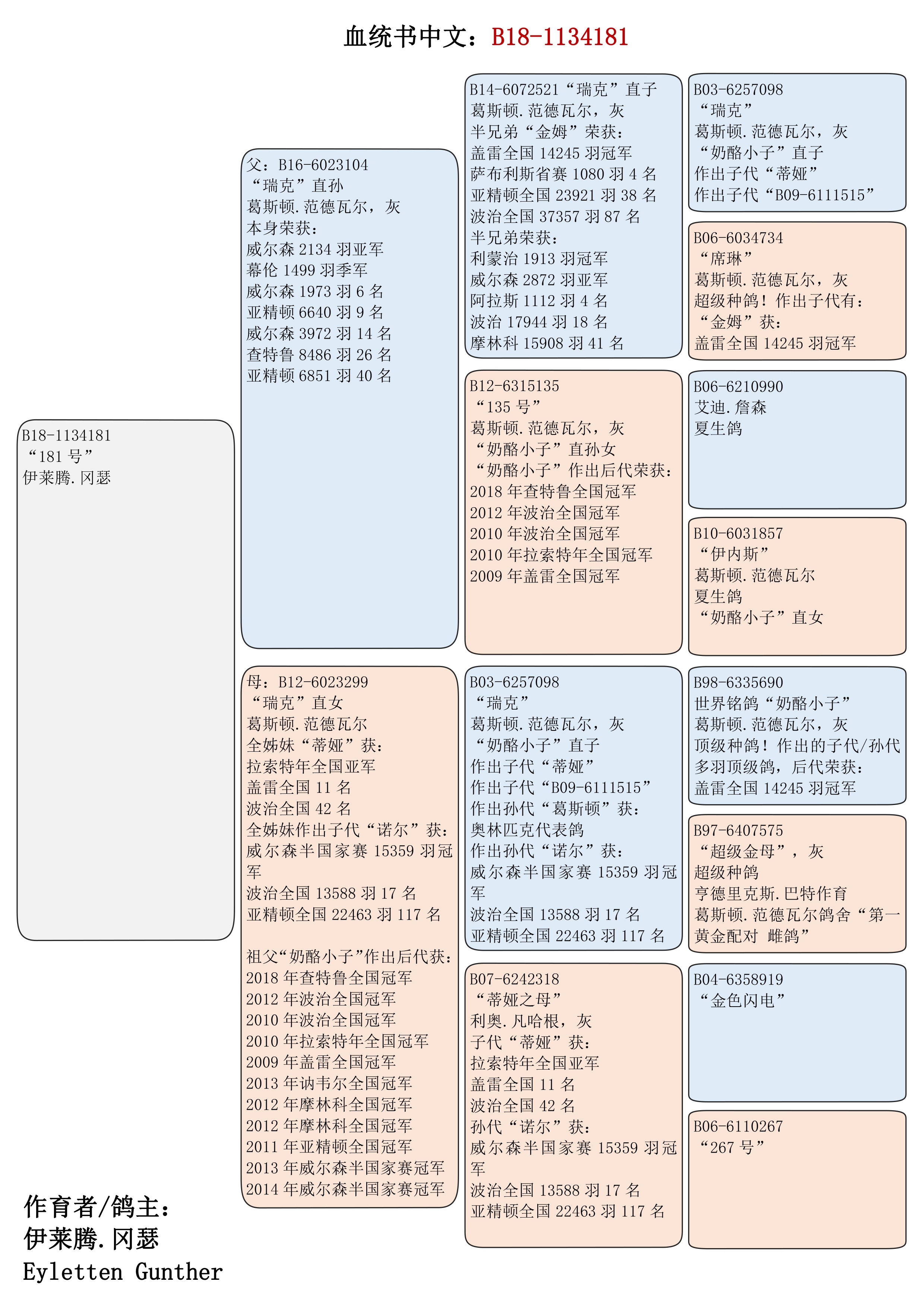 BE18 1134181 雌 原版血统书 翻译件 随鸽发出
