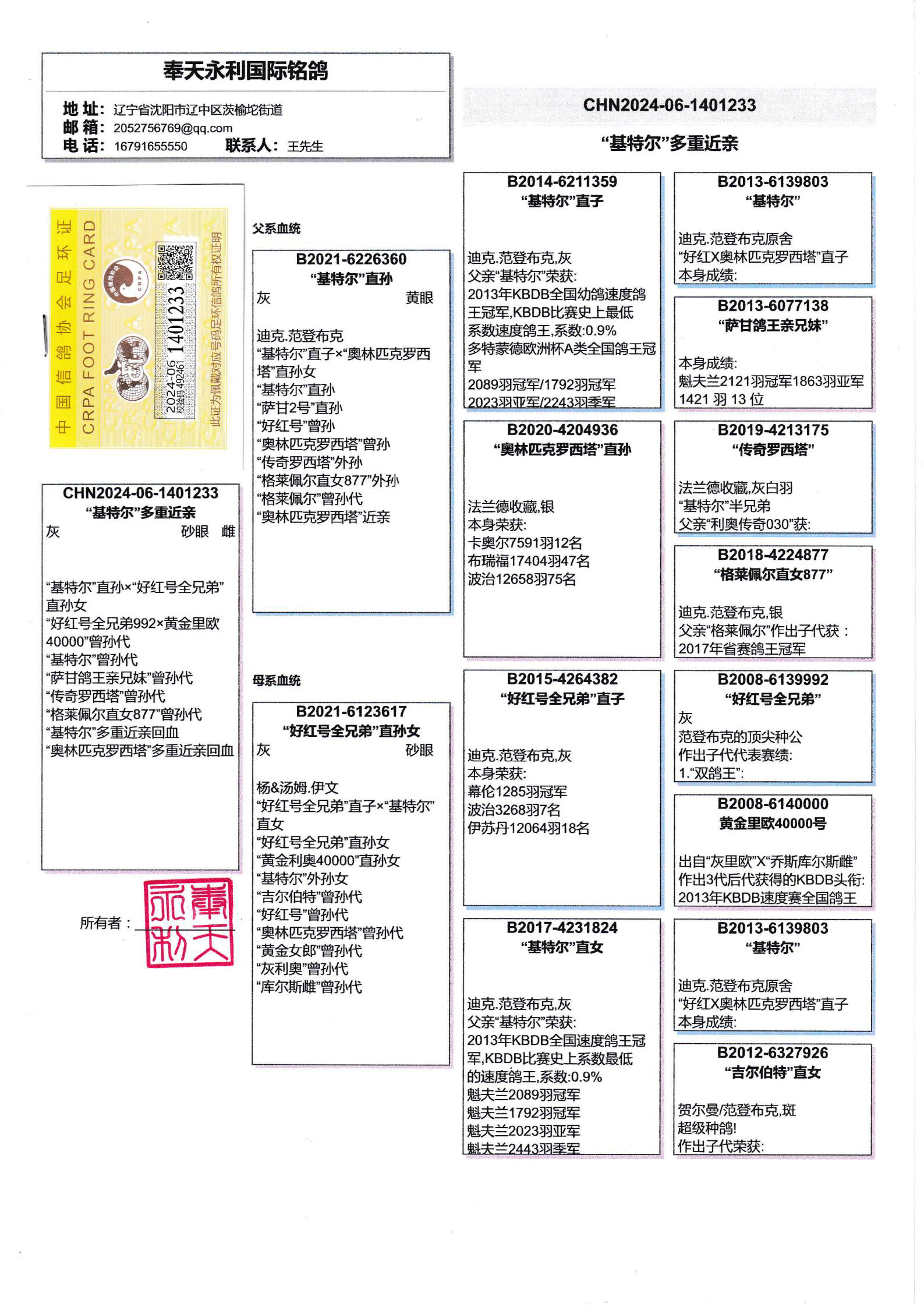 母亲:B2021-6123617“好红号全兄弟”直孙女