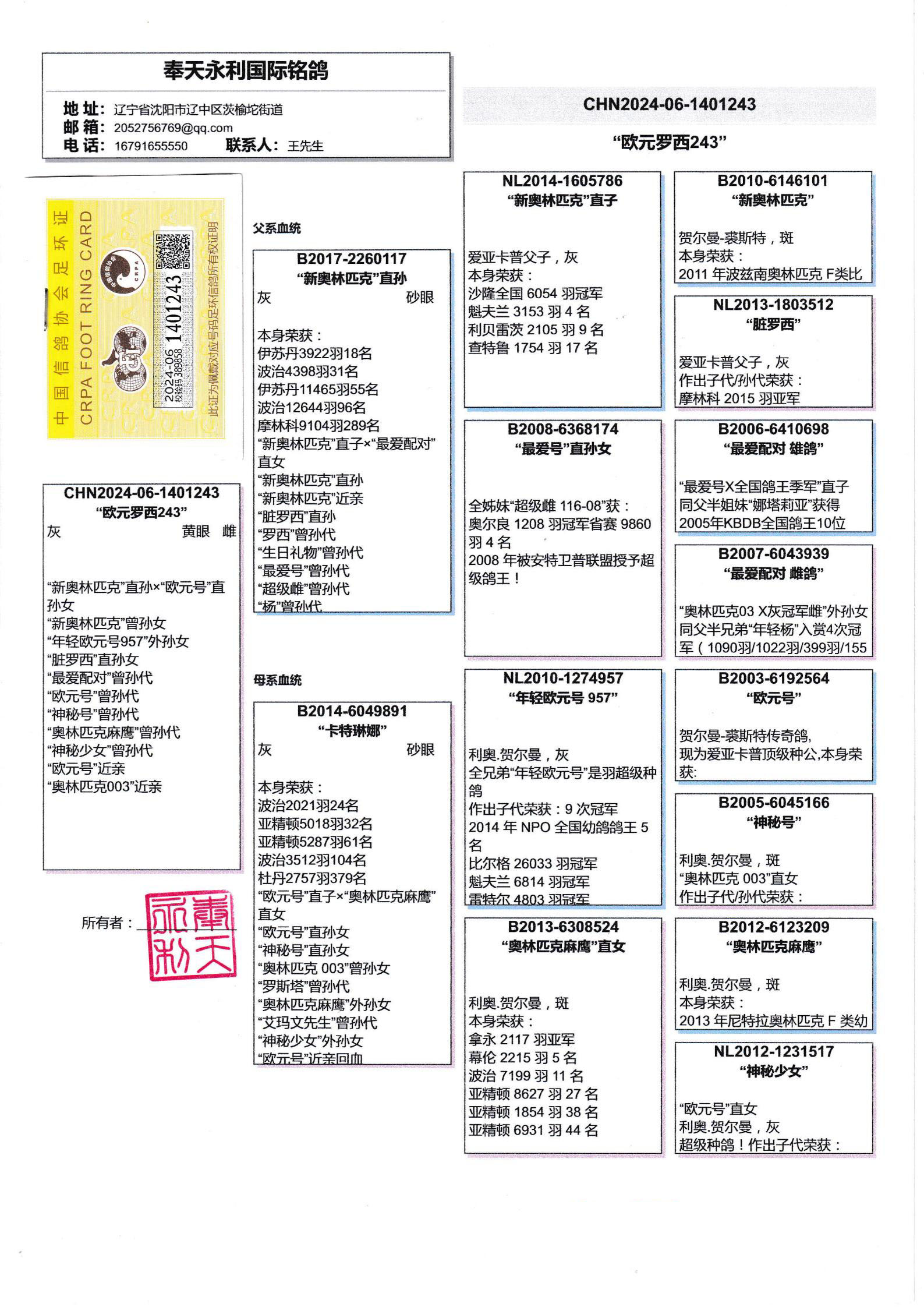 - 当前查看拍卖鸽:支援鸽友0元抢拍~!“新奥林匹克”直孙×