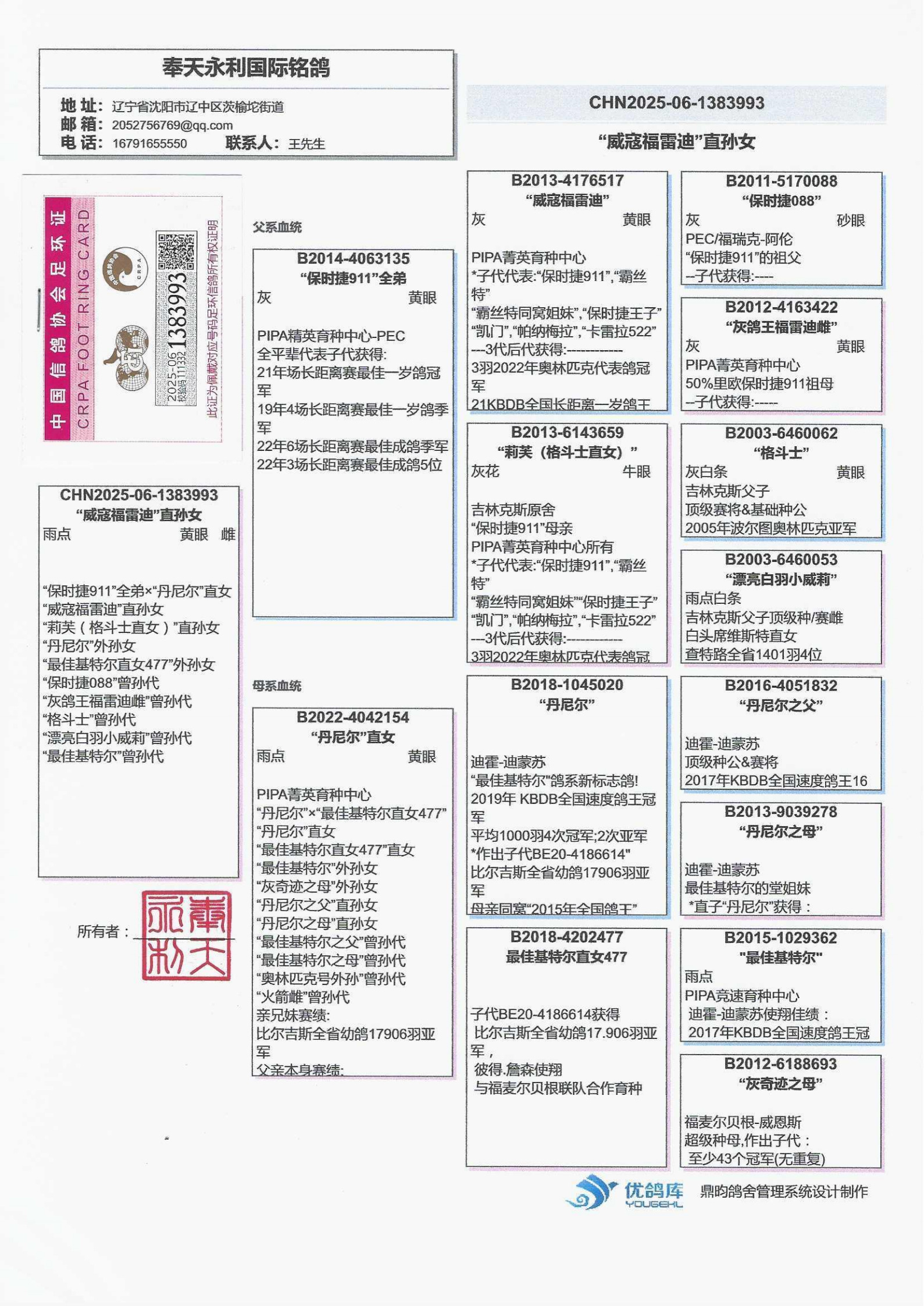 - 当前查看拍卖鸽:“威寇福雷迪”直孙女“保时捷911”全弟