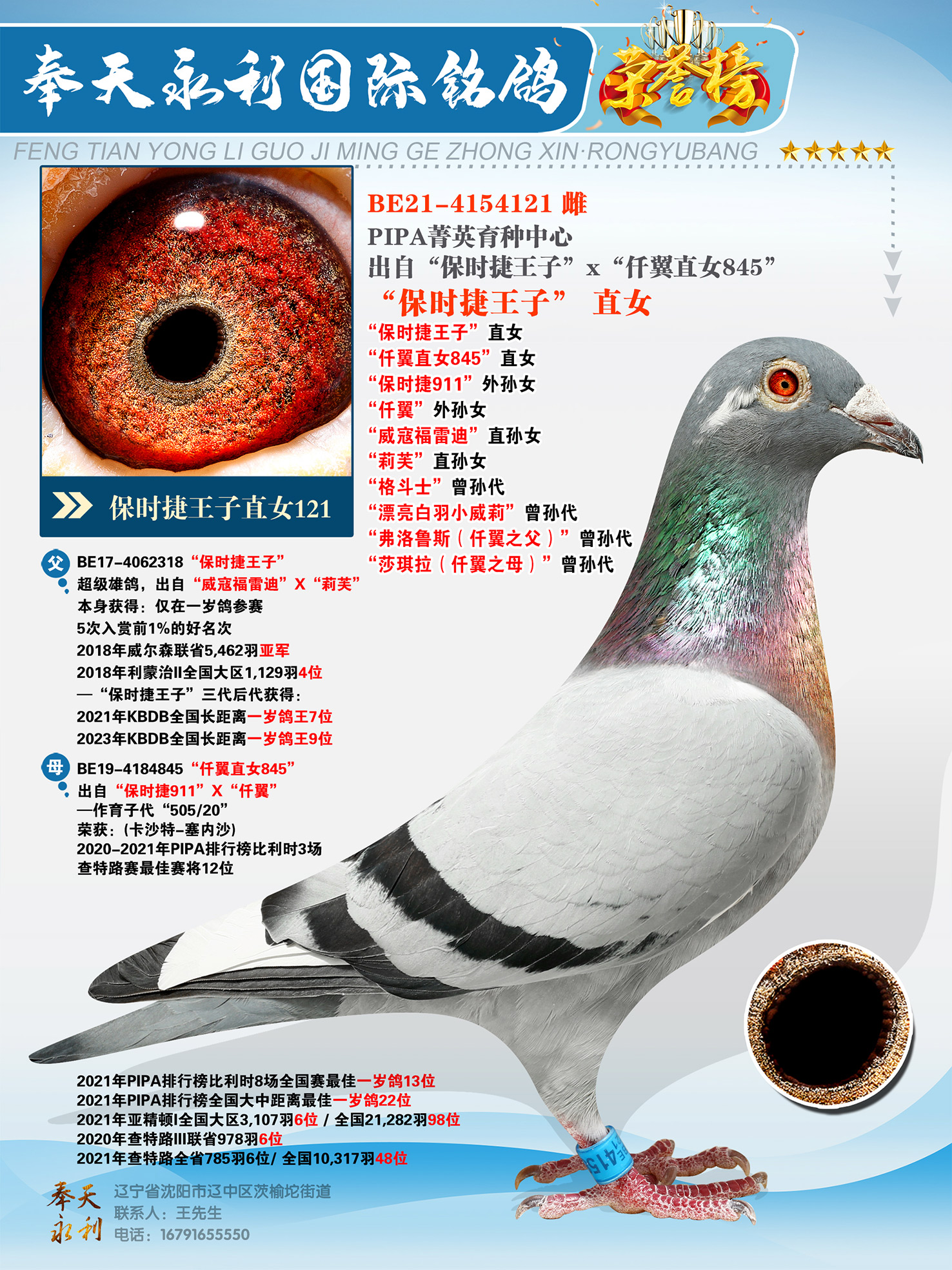 2021年PIPA排行榜全国大中距离最佳一岁鸽22位