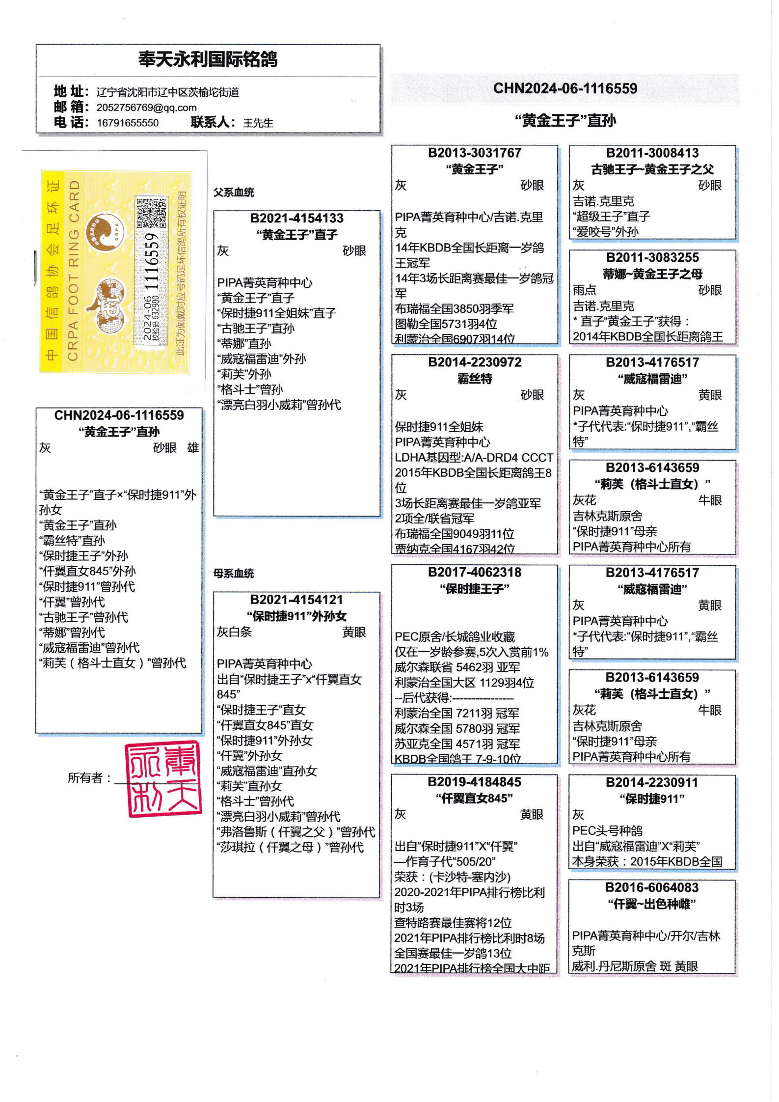 * BE22-4150782在2024-8-18获: 威尔森全国综合22675羽总冠军!(直孙女)