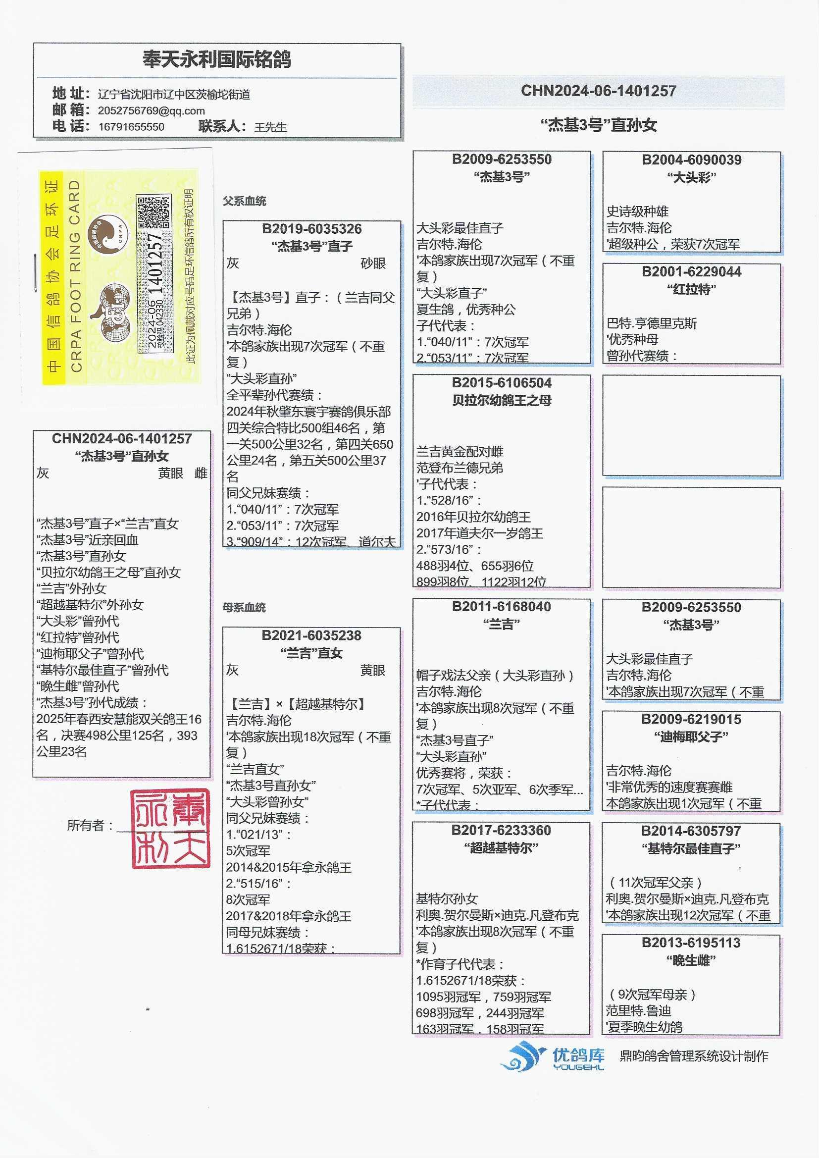 - 当前查看拍卖鸽:“杰基3号”近亲回血 “杰基3号”直孙女