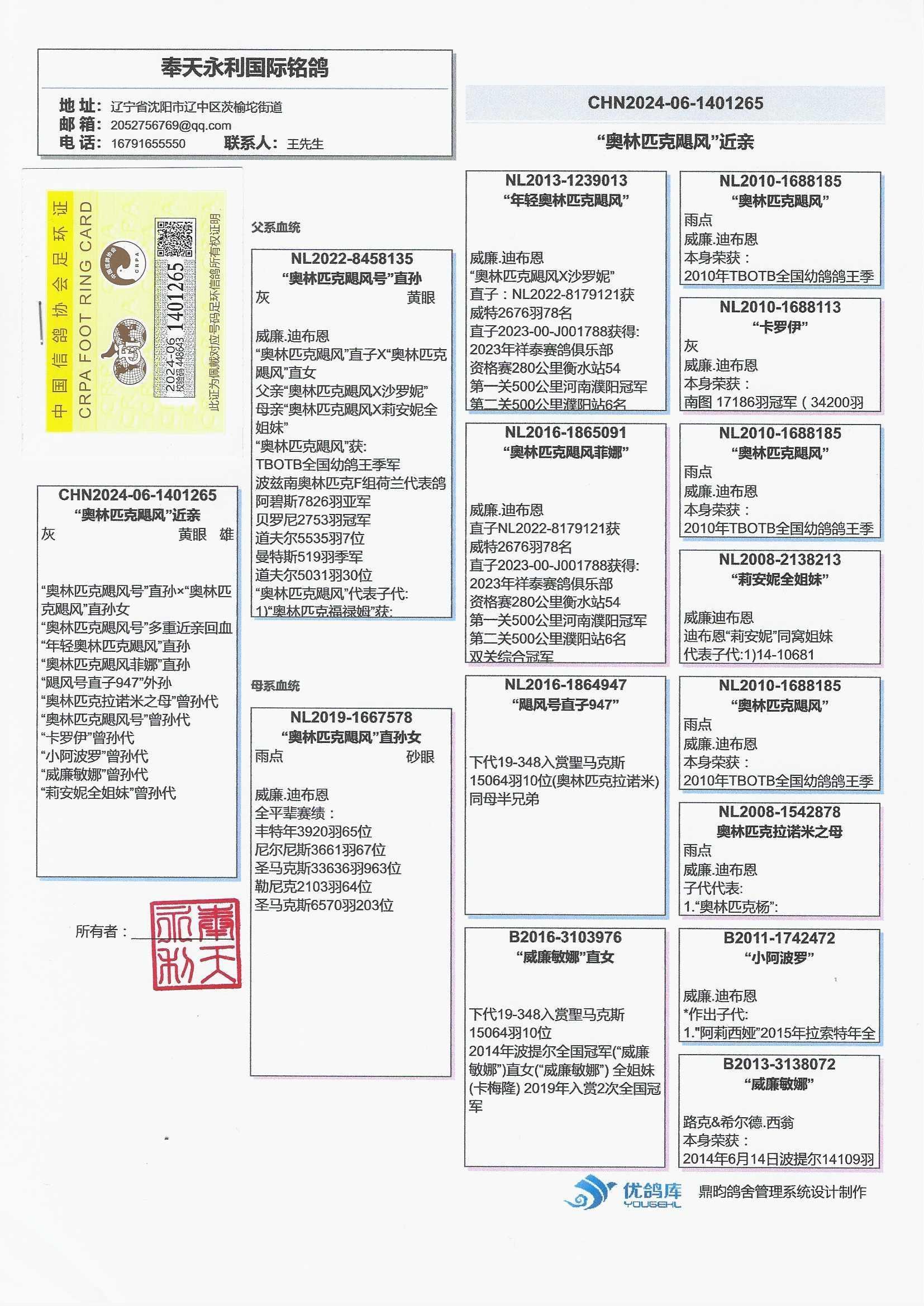 - 当前查看拍卖鸽:“奥林匹克飓风号”多重近亲“年轻奧林匹克