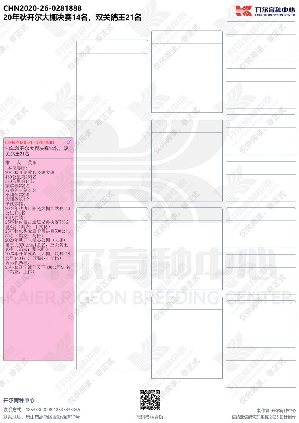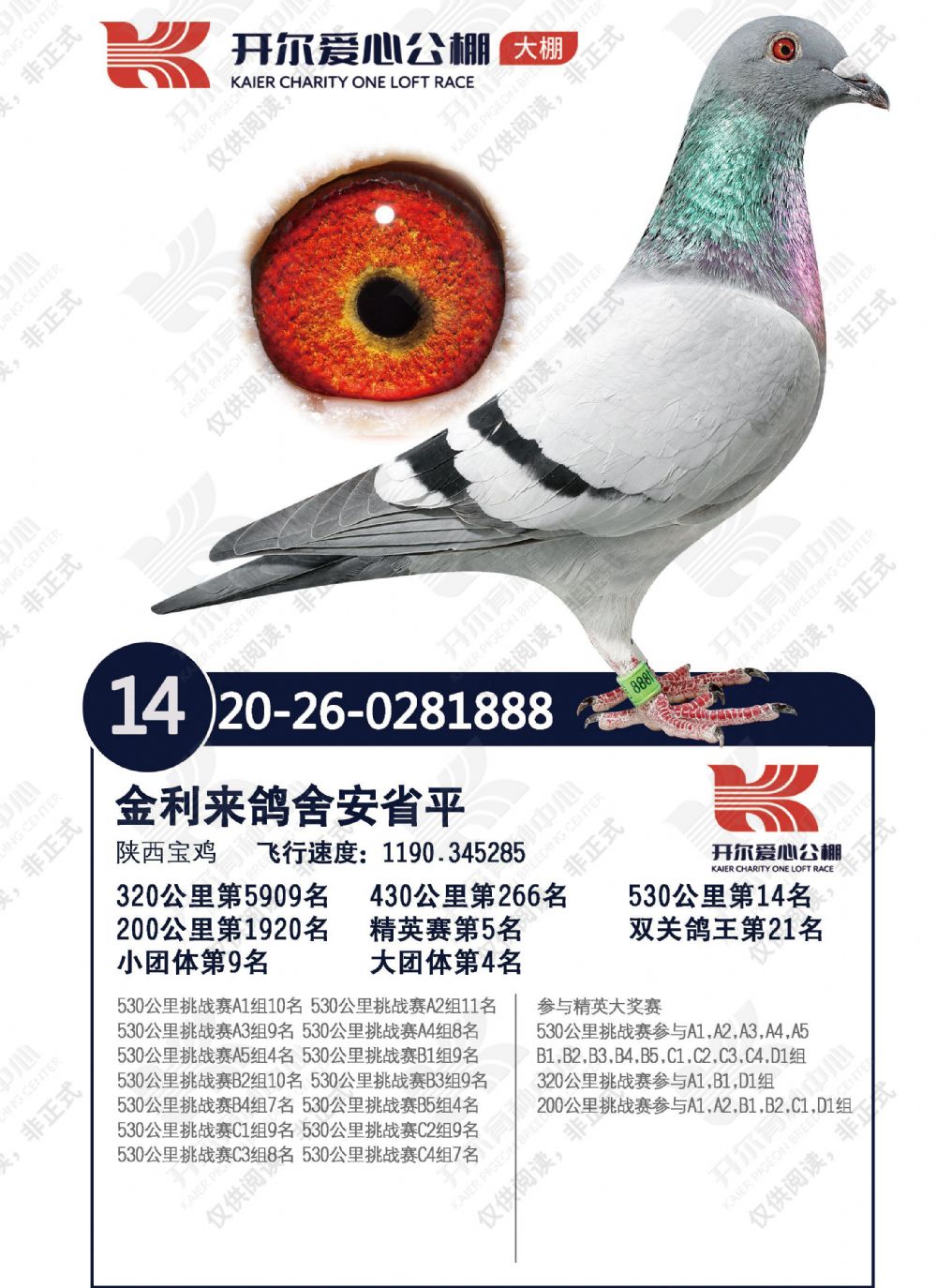 - 当前查看拍卖鸽:20年秋开尔大棚决赛14名,双关鸽王21