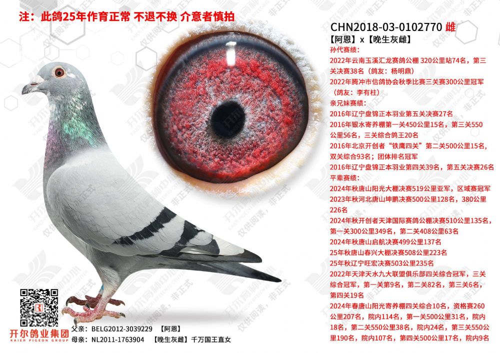 | 1648676 | 百丽荣光×御风俊才外孙女(拍此鸽送NL12-1640452) | ¥10000元 | 0次 |
