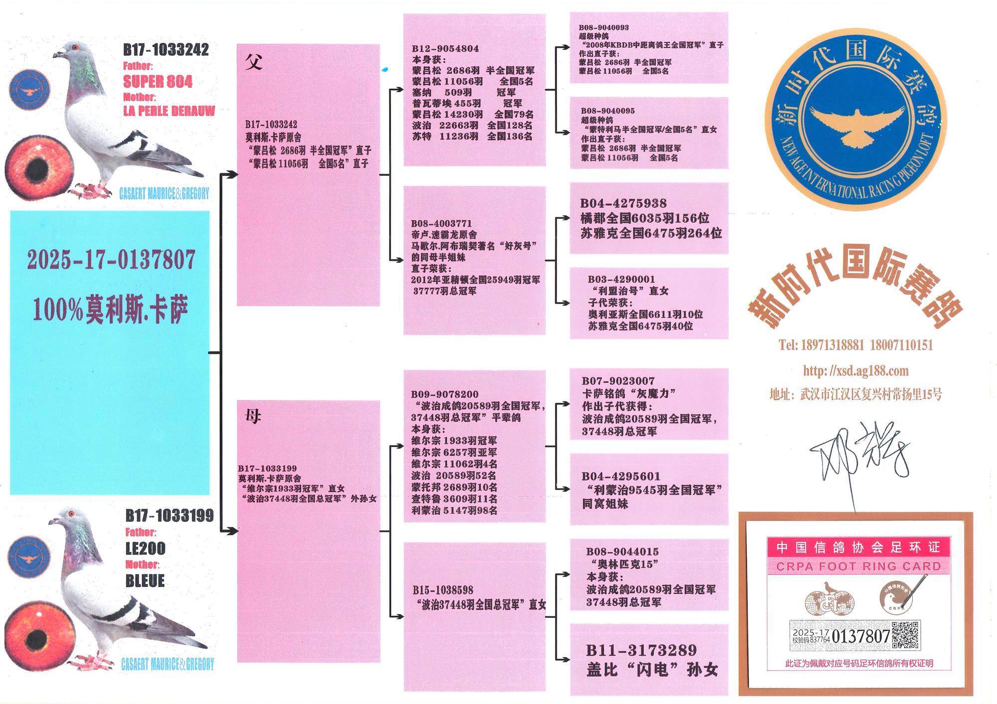 - 当前查看拍卖鸽:卡萨-蒙吕松冠军直子 x 维尔宗冠军直女