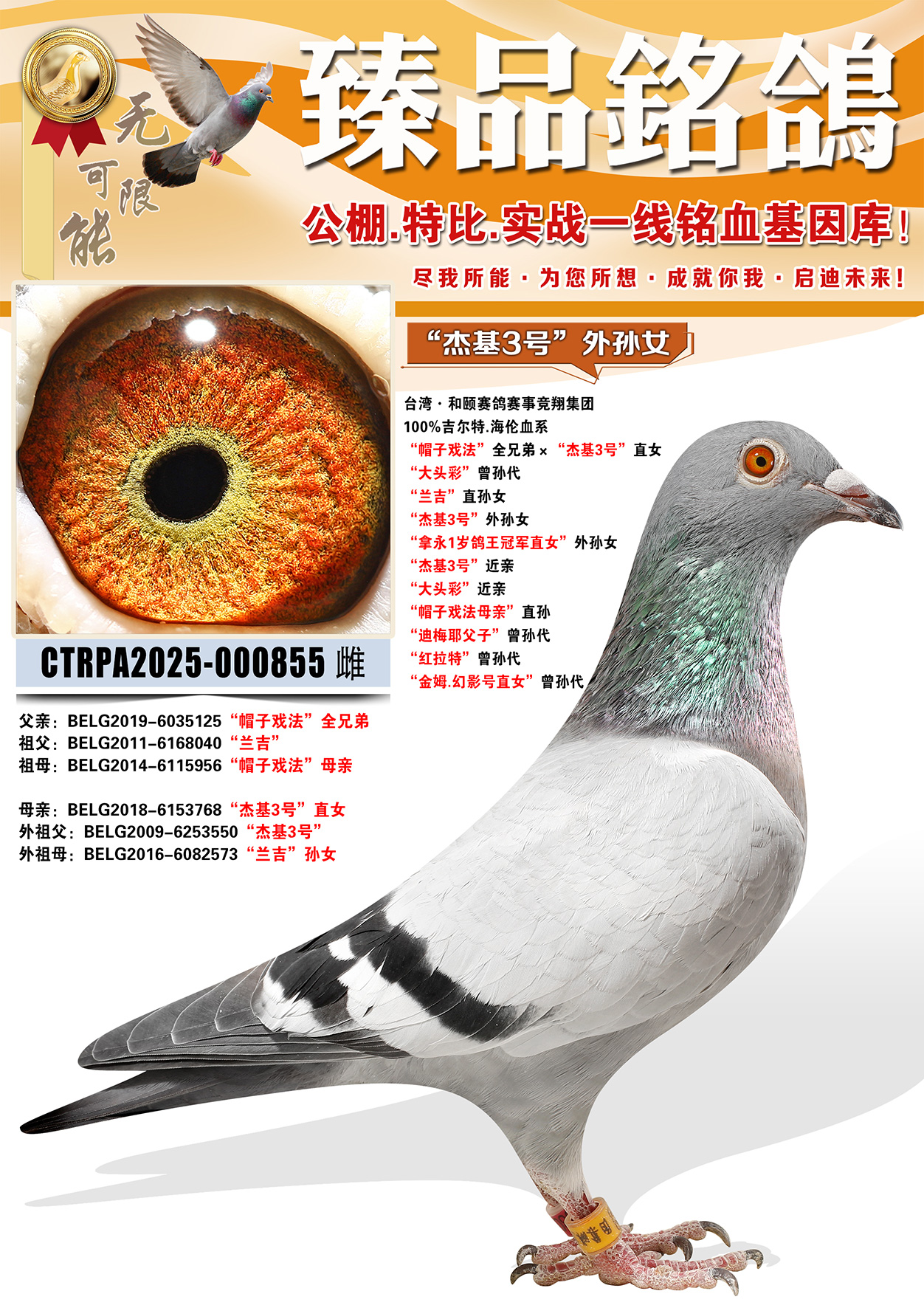 曾外祖母:BELG2015-6106504 贝拉尔幼鸽王之母:兰吉黄金配对雌