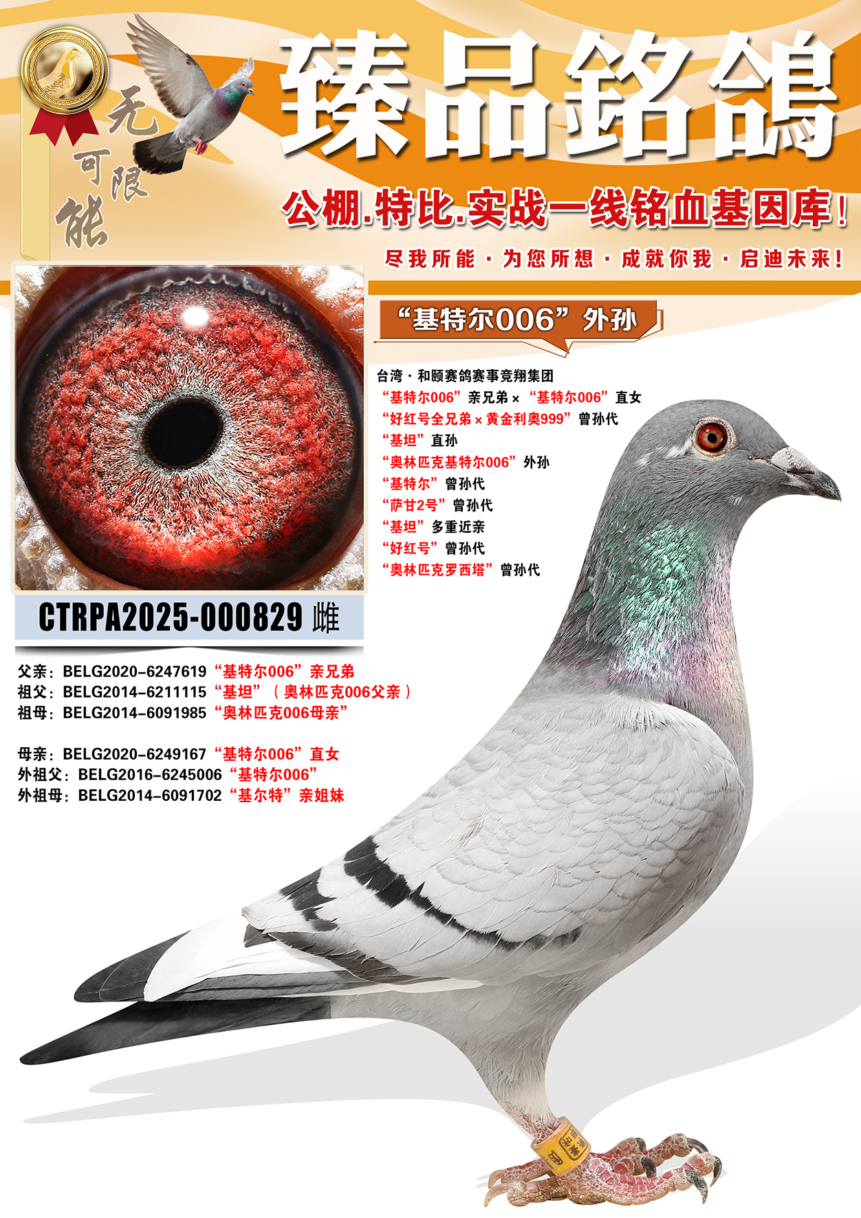 作出子代超过7羽冠军鸽!