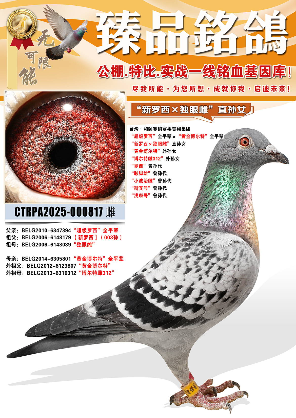 所有拍卖鸽全部血统真实!!个人鉴鸽观点不一,飞不飞天上见.血统成绩第一