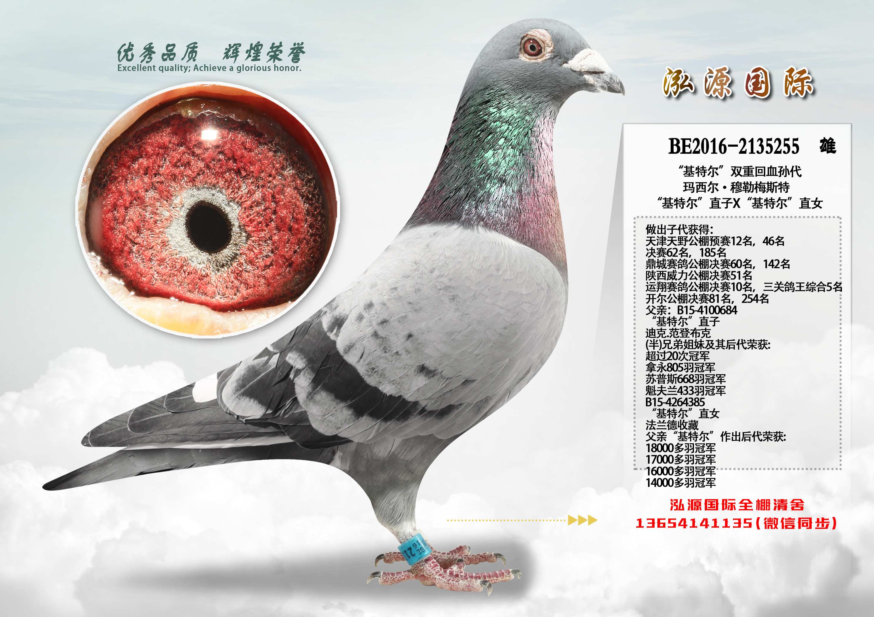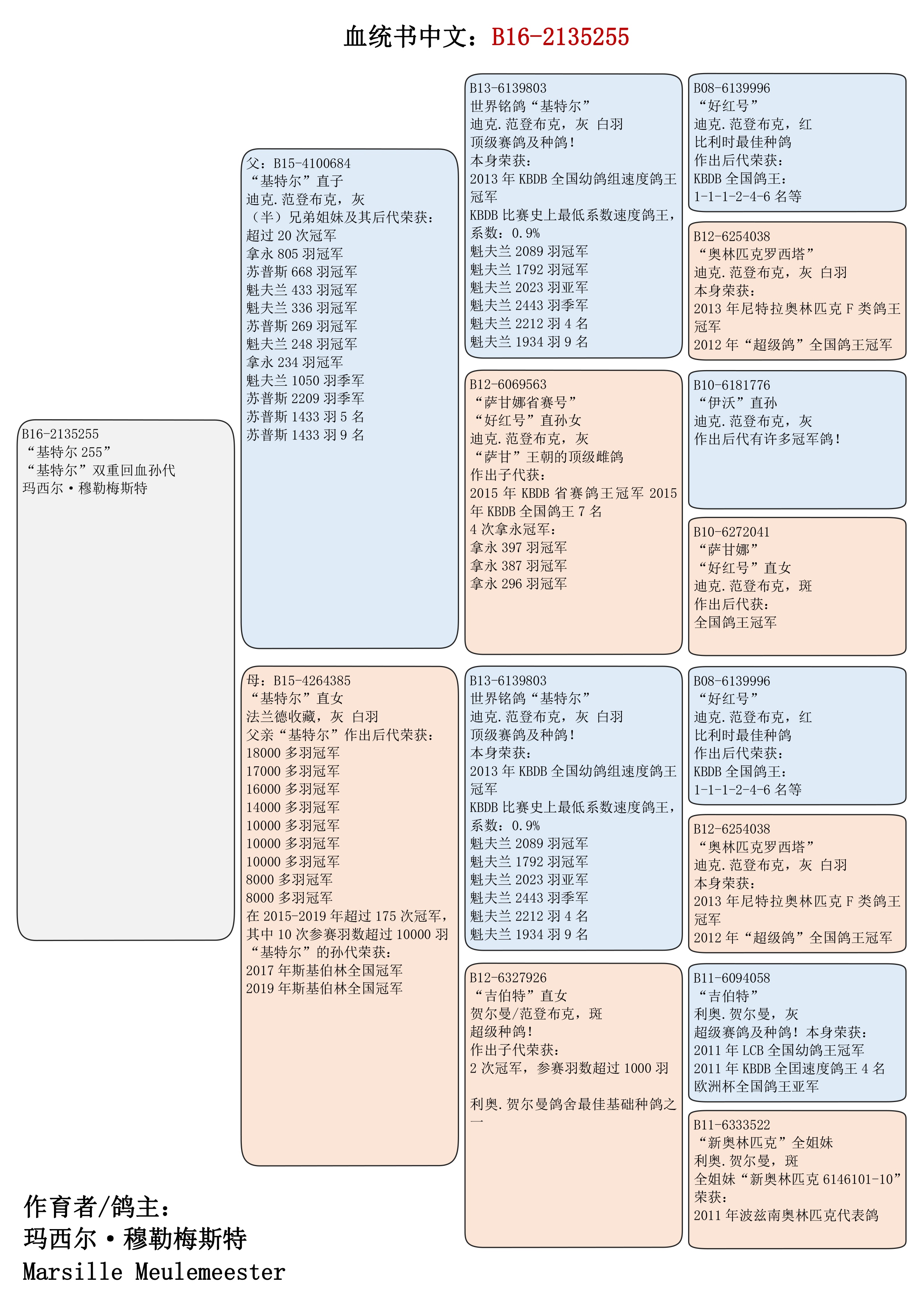 BE16 2135255 雄 原版血统书 翻译件 随鸽发出