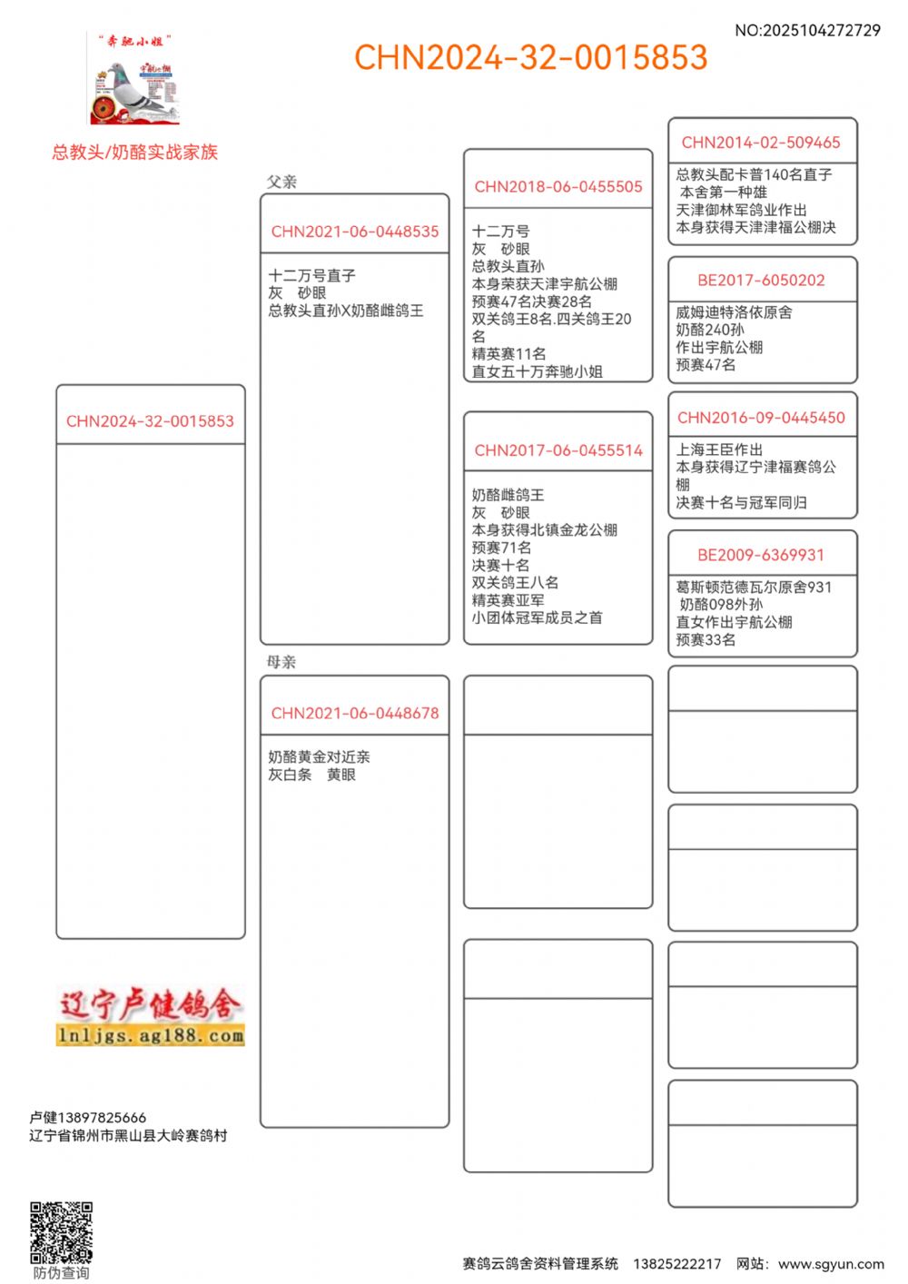 “辽宁卢健鸽舍公棚前十榜2015年-2025年”