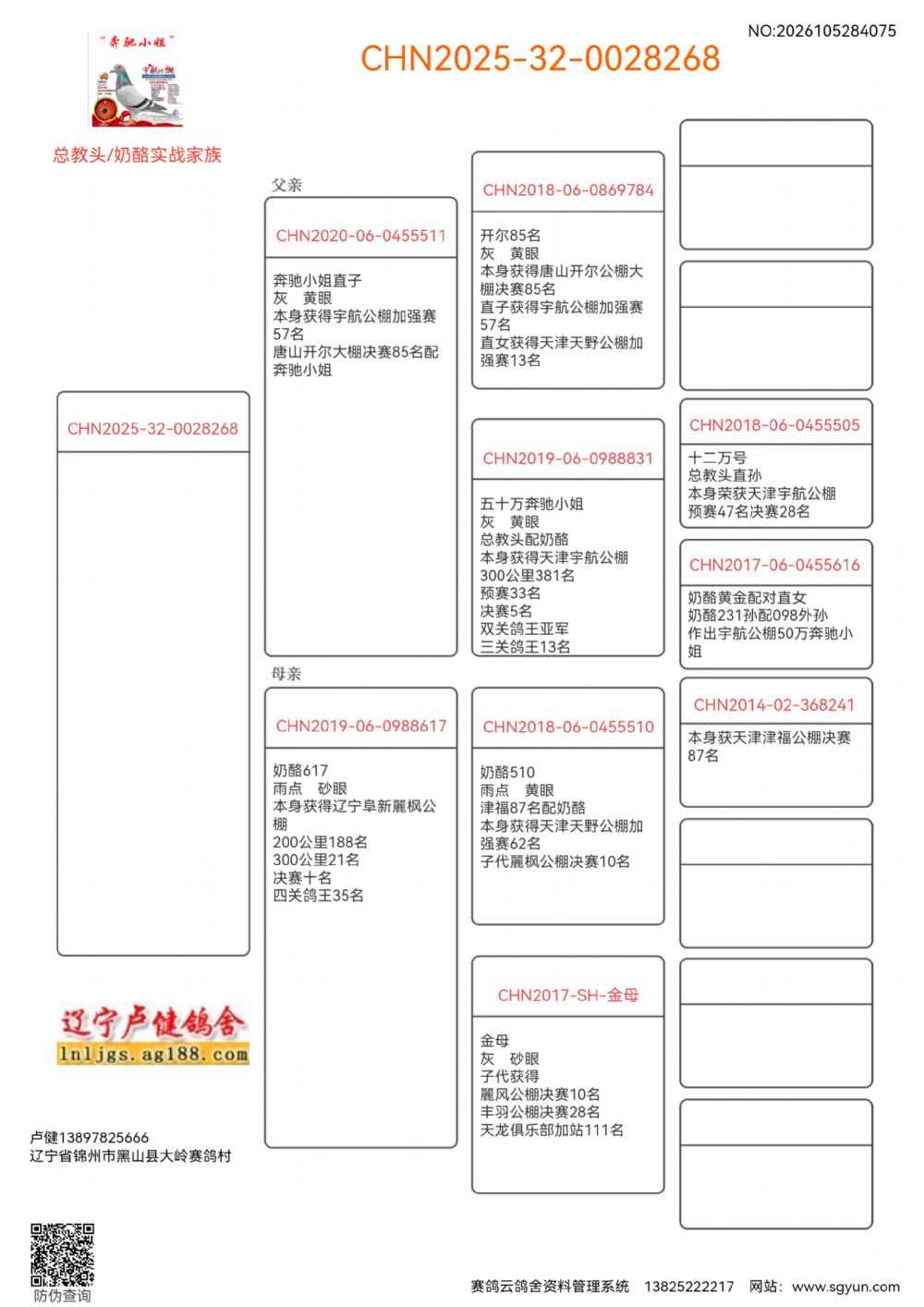 | 1648982 | 32.总教头四关鸽王四名X奶酪四关冠军母亲 | ¥600元 | 0次 |