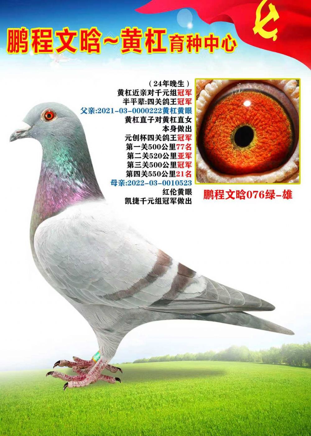 (24年晚生)黄杠近亲对千元组冠军半平辈:四关鸽王冠军 父亲