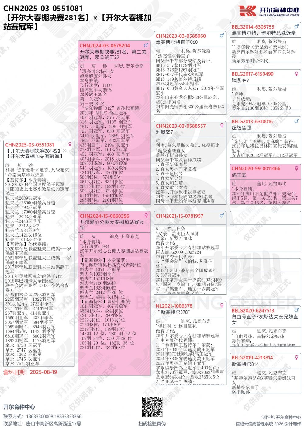 注:收鸽地址务必详细