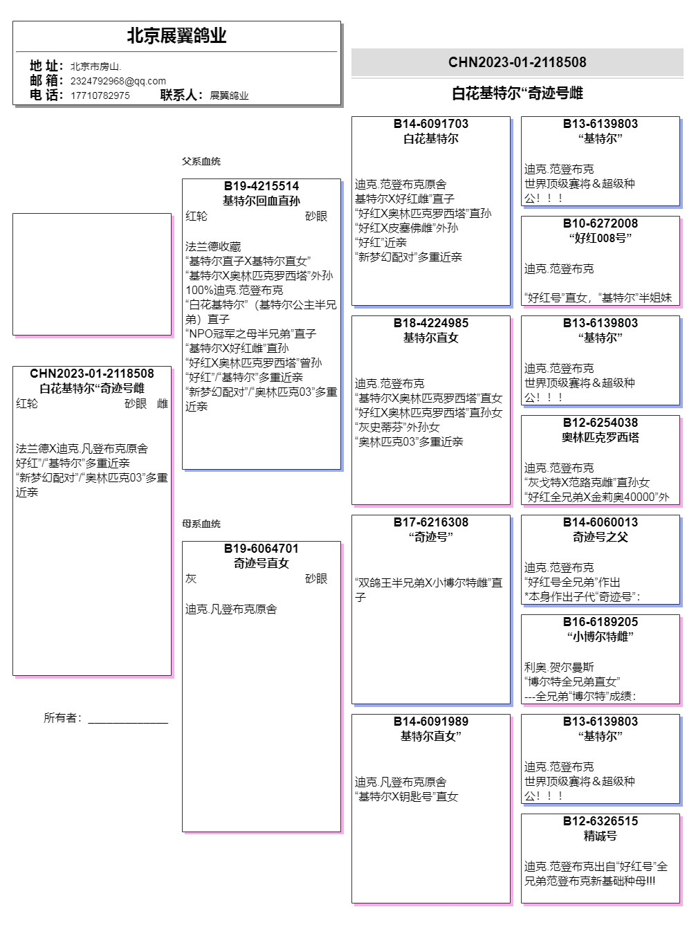 - 当前查看拍卖鸽:白花基特尔奇迹号雌8508