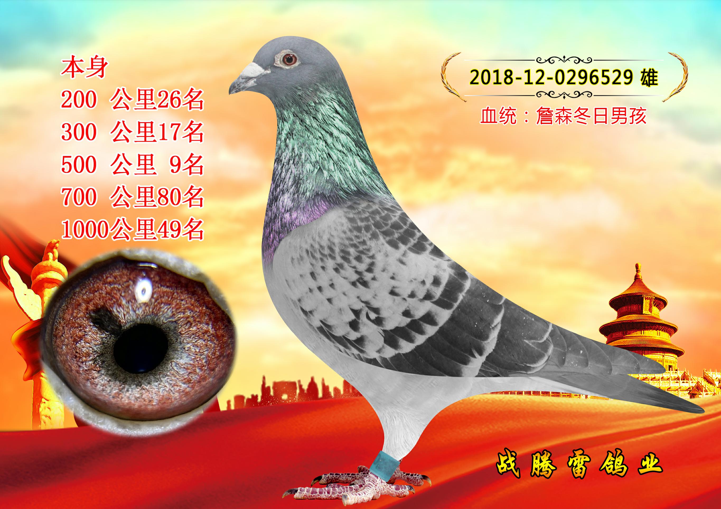 詹森冬日男孩,本身为千公里49名、子代千公里27名、800公里国家赛12名、莲翔公棚376名