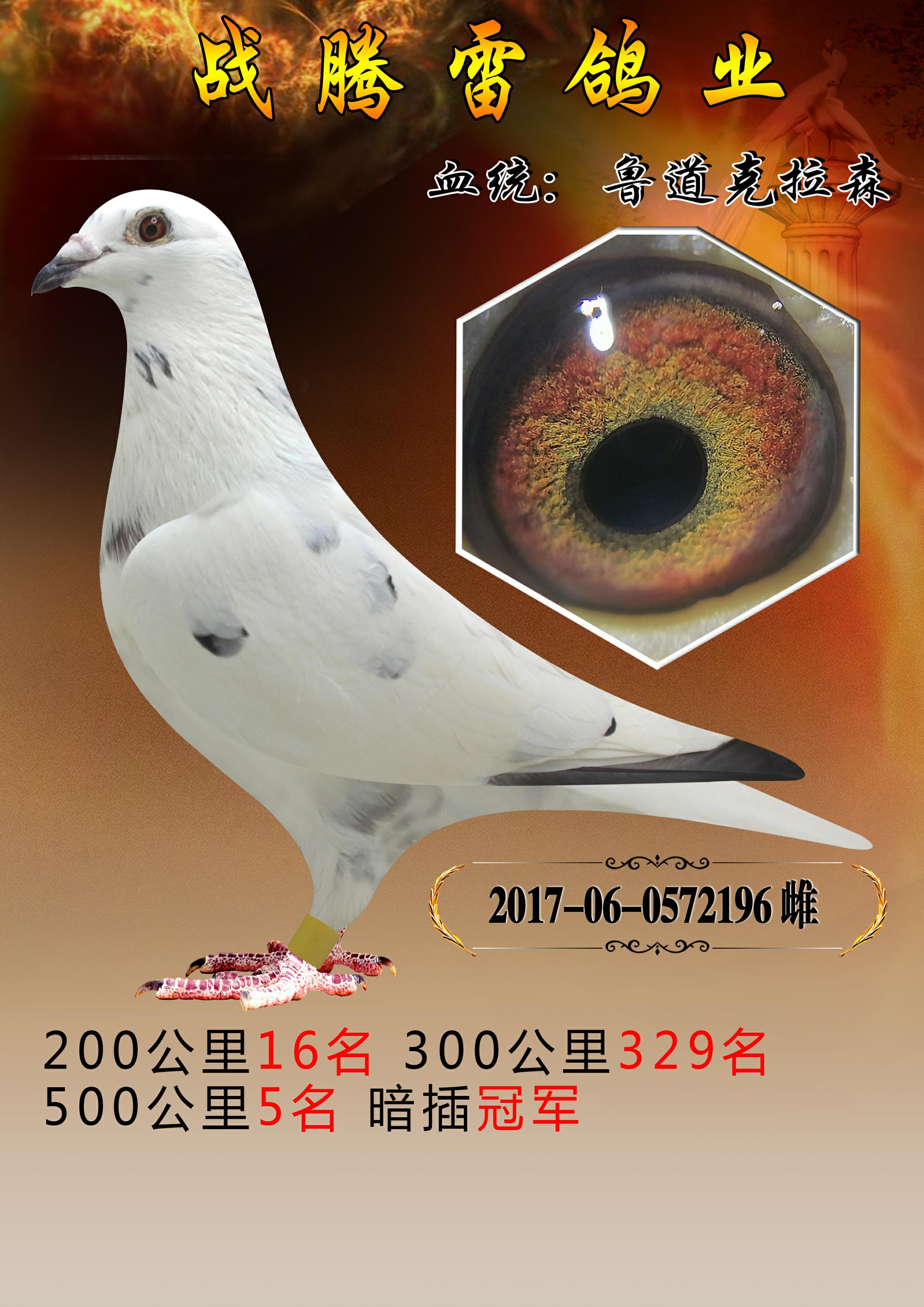 本鸽业现役种鸽,本身500公里5名!暗插组冠军!子代连续4年公棚高位!