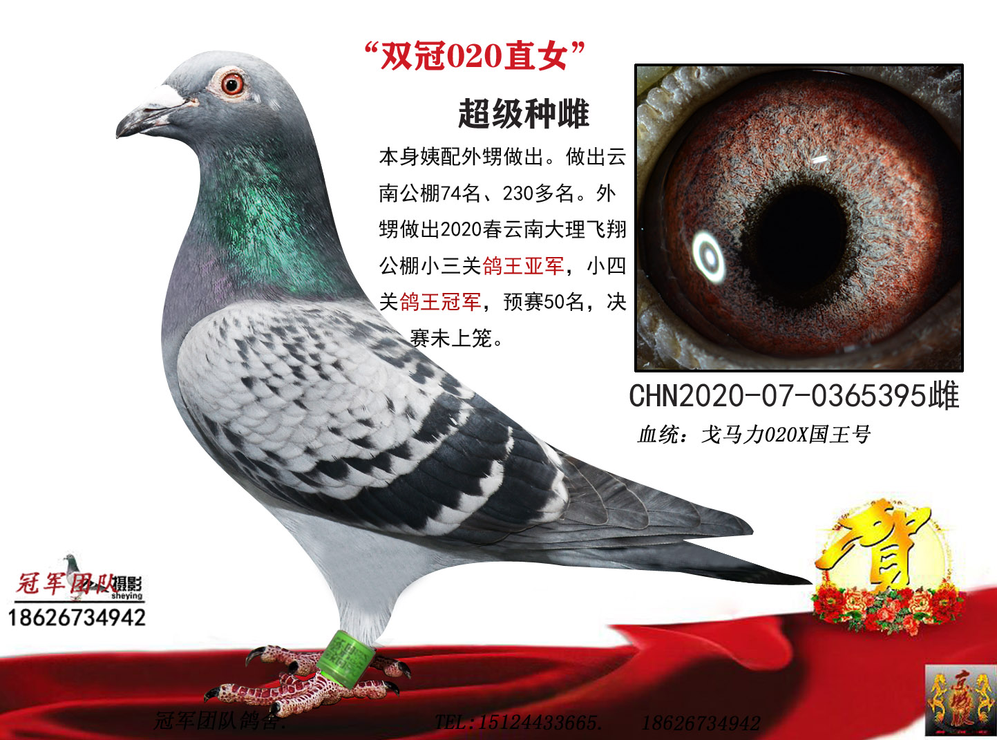 血统书足环卡随鸽发出,低价位高品质幼鸽,种赛皆宜。良心做人,所有成绩血统假一赔百,不做虚假宣传!