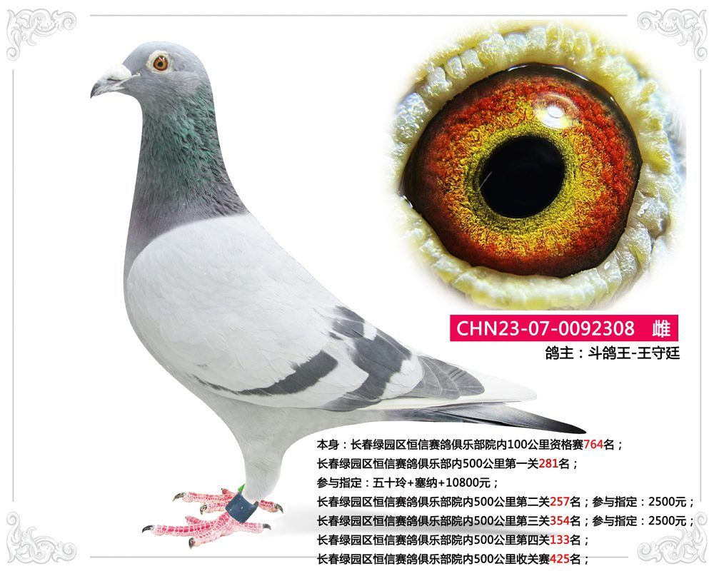 长春绿园区恒信赛鸽俱乐部院内500公里第三关354名;参与指定:2500元;