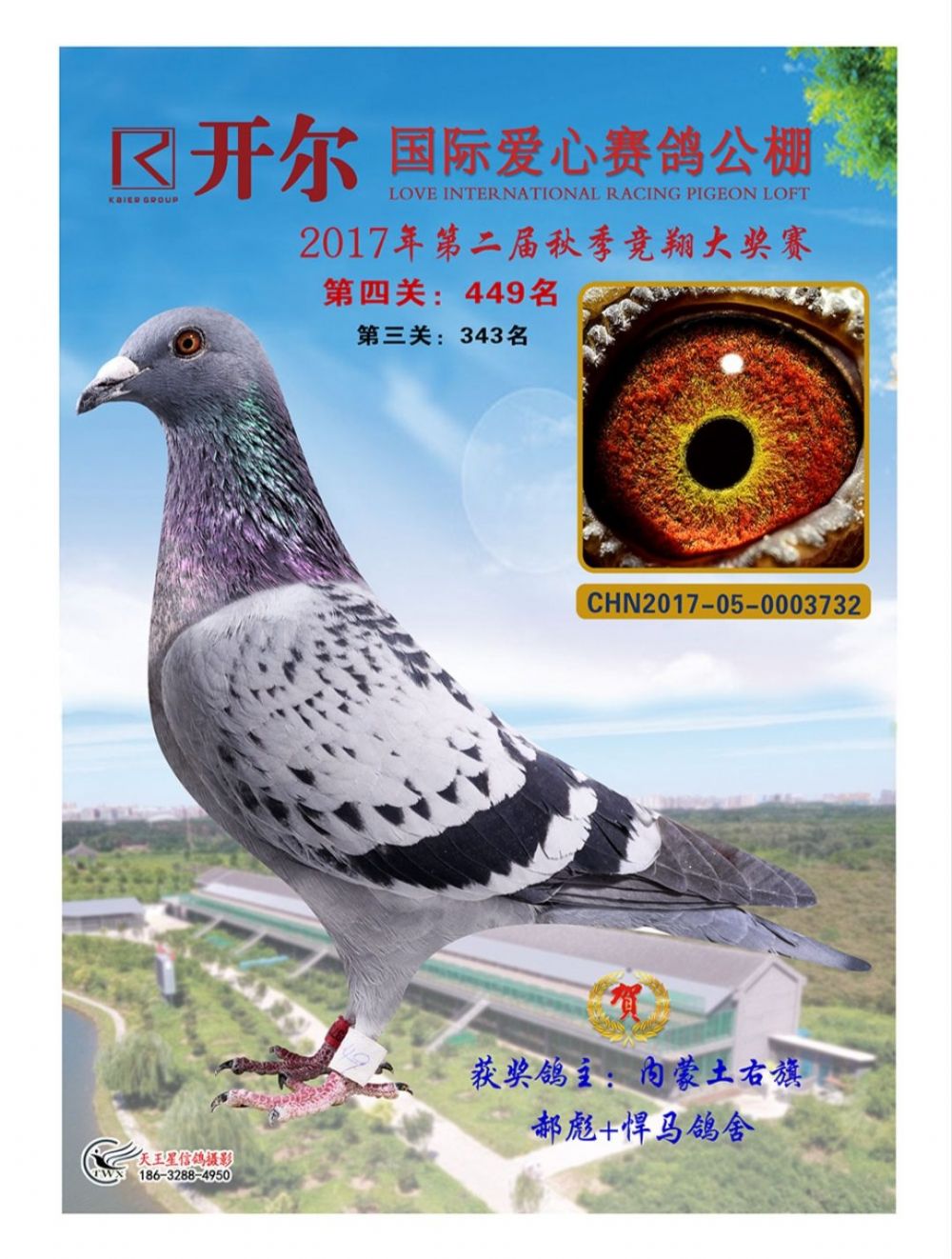 开尔国际赛鸽爱心公棚500公里决赛449名;